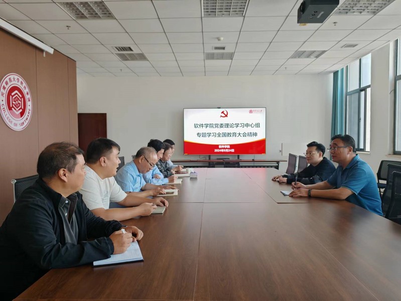 9月24日下午,软件学院在平原湖第三会议室召开党委理论学习中心组学习会议,专题学习全国教育大会精神和习近平总书记在全国教育大会上的重要讲话精神。会议由院党委书记马新峰主持。