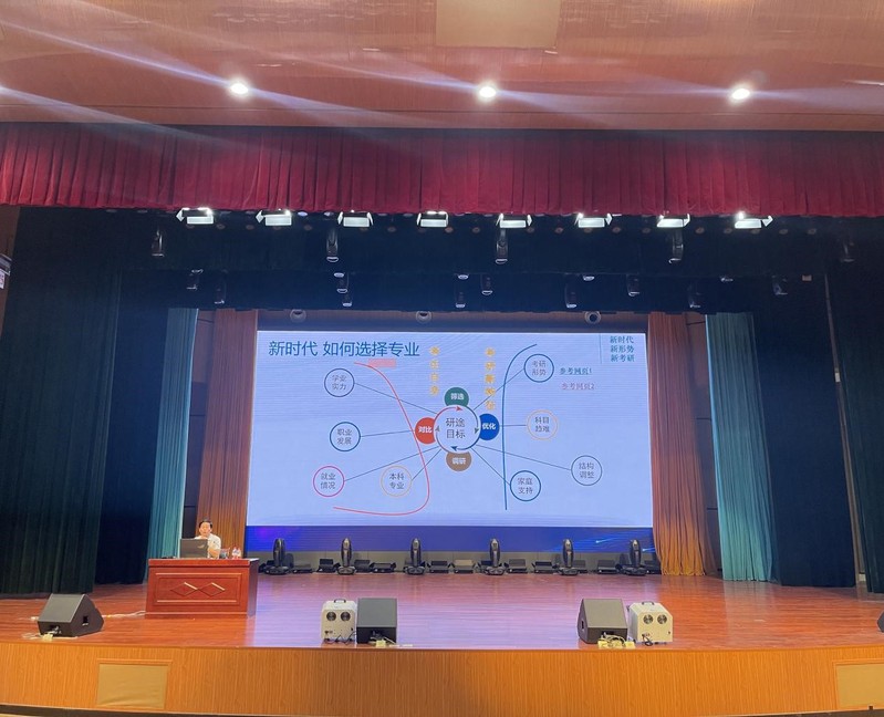 梁书斌凭借多年研究生招生工作经验,针对当前面临的新形势,以生动具体的案例和详细图表,围绕研究生招生流程、院校和专业方向的选择、如何有效备考以及备考过程中的注意事项等内容进行了全面细致的解读,鼓励同学们要树立信心、强化演练、扬长避短、精心准备。他强调了院校选择在考研过程中的重要性,要提前了解所选院校考试科目是否变动,招生计划是否减少,报考条件是否变化,有针对性的及时调整策略,调整报考专业和复习备考计划。在最后的互动环节,梁书斌对学生们提出的问题逐一解答,现场掌声阵阵,同学们纷纷表示收获颇丰。