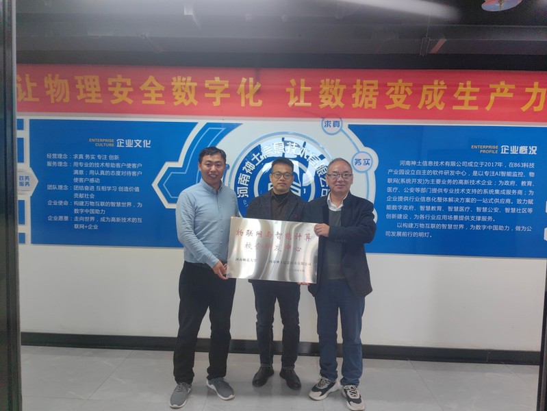115日上午,软件学院与河南神土信息技术有限公司举行共建物联网与智能计算校企研发中心合作签约暨授牌仪式。红旗区科学技术局副局长林吉良、河南神土信息技术有限公司总经理刘金伟、软件学院副院长袁培燕、段德全、实习实训办公室主任刘金金参加了仪式,仪式结束后政校企三方就边缘算力技术攻关、硕本人才共同培养等进行了深入的座谈交流。