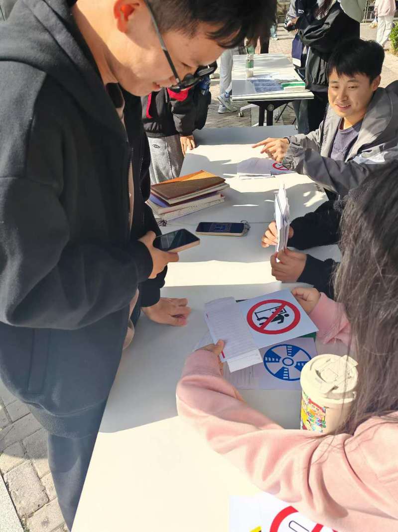活动伊始,学生会生活安全部工作人员指挥参与的同学们前往指定地点转动消防大转盘。色彩鲜艳的大转盘上划分了多个区域,每个区域都印有精心设计的消防知识任务,参与者需要通过转动转盘,在转盘停下后对抽到的任务进行拍照并积极完成。在活动过程中,有的同学抽到了辨别常见的安全标识小任务,有的同学抽到了安全知识辩对错小游戏,还有的同学抽到了消防安全知识测试,测试内容涵盖了广泛而深入的消防知识领域,例如火灾的成因与预防、火灾发生时的正确应对策略等。每一位同学都积极投入到活动中来。他们相互交流讨论,现场气氛热烈非凡。活动结束后,学生们纷纷表示,通过此次活动,他们对于消防安全知识有了更深刻的认识,增强了自身的消防安全意识和应急处理能力。