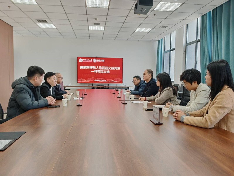 2024年11月21日下午,驼人集团蓝光实验室总裁程文胜、人力资源中心总裁李嘉雯、蓝光实验室软件工程研究所所长鲍胜文、招聘管理部经理赵青,以及东软教育科技集团华北区销售总监王永朝一行莅临伟德官网下载苹果版软件学院进行座谈交流。软件学院院长王川、副院长段德全参与此次座谈,座谈会于平原湖校区第三会议室举行,由王川院长主持。