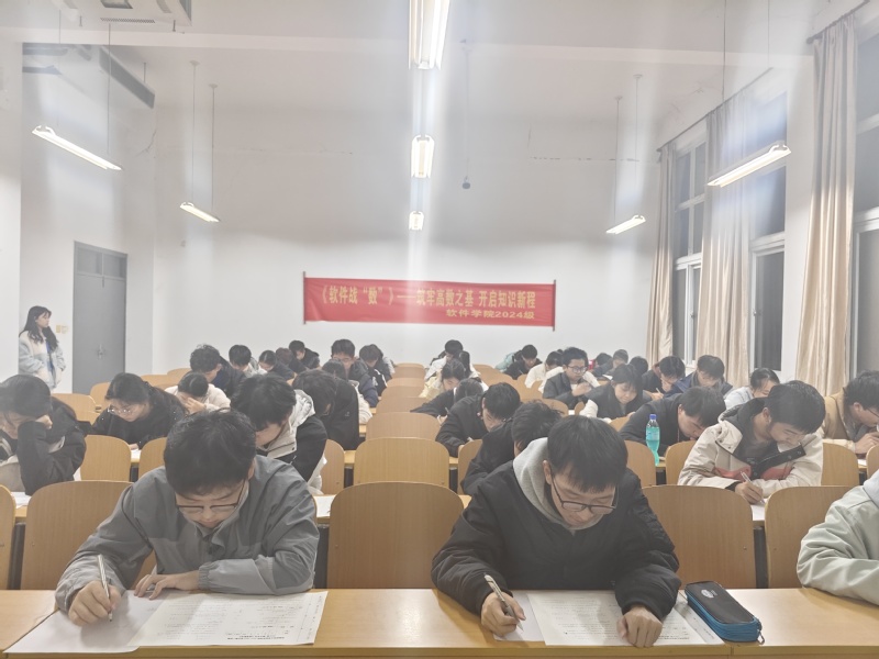 为检验2024级新生《高等数学》课程的学习效果,筑牢学业之基从而助力其在学业之路上稳健前行,11月21日晚,软件学院在平原湖校区向真楼开展“筑牢高数之基,开启知识新程”高等数学测验活动。本次活动由2024级全体专兼职辅导员组织,2024级全体学生参加。