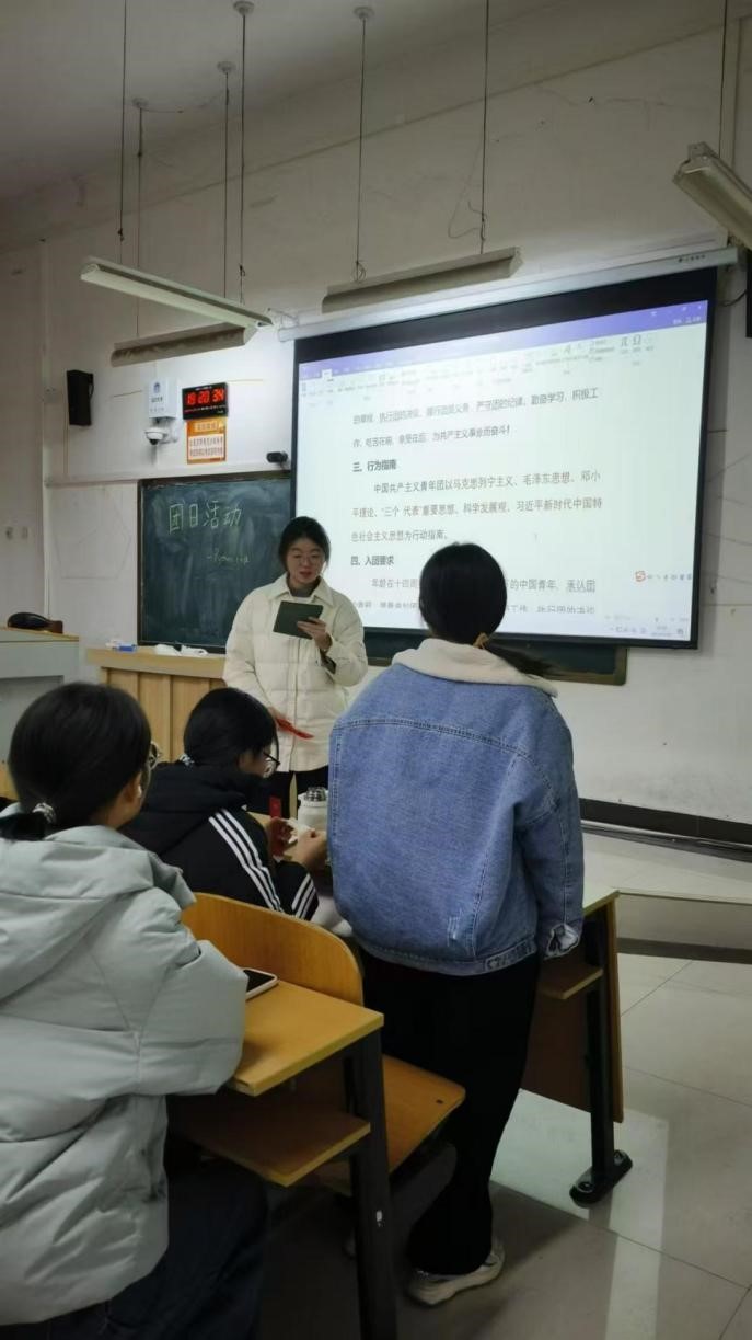 活动伊始,团支书带领大家进行团史学习,随后进行的团史知识有奖竞答环节点燃了同学们的热情。全面涵盖了入团要求,像是对年龄、思想觉悟等方面细致入微的规定;行为指南,包括团员在日常生活、学习以及社会活动中应秉持的道德规范与行为准则;团的纪律,从严格的组织纪律到对团员犯错后的惩戒措施等多方面内容。同学们全神贯注、积极抢答,现场气氛热烈非凡。这不仅检验了大家平日里对团史知识的积累,更激发了进一步深入学习团史的兴趣和动力。随后,全体同学共同观看了电影《志愿军》。那一幕幕震撼人心的画面,让同学们深受触动,不少人眼眶湿润,被志愿军战士们钢铁般的信念和无私奉献的伟大情怀所折服。