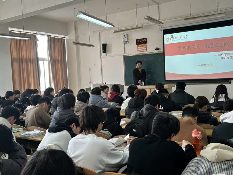 为夯实学院学风建设,充分发挥榜样带动作用,帮助同学们在考试后及时总结学习经验、掌握高效复习方法。12月8日晚,软件学院2024级学生于平原湖校区向真楼208教室开展“乘考试东风,聚经验之能”学习经验交流会,专业全体专兼职辅导员参加,2024级Java方向全体同学共享此次学习盛宴。