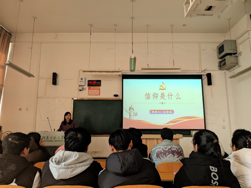 活动开始,刘雷英首先向大家传达了校组织部关于12月份主题党日活动的指南要点。随后刘雷英以“信仰是什么”为题,以2021年7月新疆大叔帮武汉游客推车拒绝收钱,亮出胸前党员徽章的故事作为引入,引导各位党员思考信仰是什么?通过百年党史历程中不同时期英雄模范人物身上表现出的精神,具体阐述在风雨如磐的革命岁月,信仰是共产党人视死如归的精神支柱;在筚路蓝缕的建设时期,信仰是共产党人干事创业的不竭动力;在春潮涌动的改革年代,信仰是共产党人开拓进取的指路明灯;在砥砺奋进的新时代,信仰是共产党人实现中华民族伟大复兴事业的精神动力。进一步结合百年师大一代代师大人的奋斗,阐释在信仰是赓续精育良才、教育报国”的使命和担当。活动第三部分同学们分组讨论新时代信仰是什么,作为大学生党员应该如何坚定自己的信仰。大家通过举例子、讲故事分享自己印象最深的优秀共产党员坚守信仰的故事以及自己未来的努力方向。