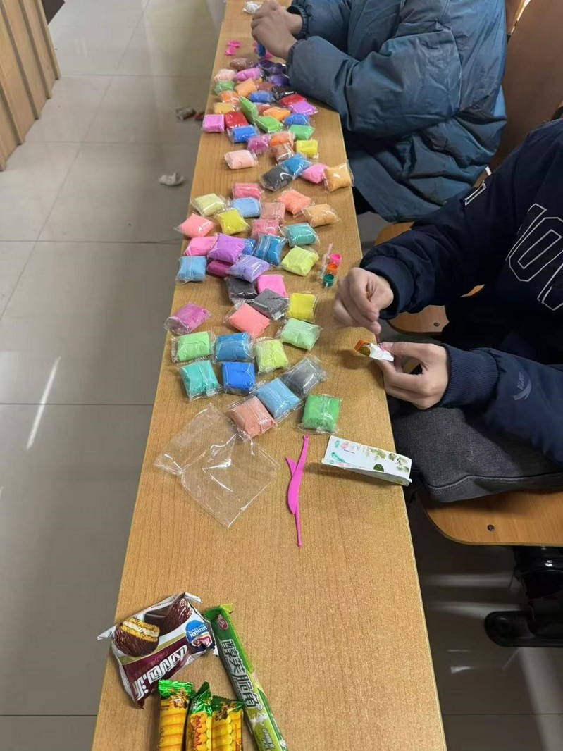 活动现场精心准备了热茶水、热咖啡、热奶茶等多种热饮,让同学们在寒冷的冬日里感受到了温暖。大家手捧热气腾腾的饮品,欢声笑语不断,驱散了冬日的严寒。DIY石膏娃娃区域人气高涨,大家充分发挥自己的想象力和创造力,精心绘制出一个个色彩斑斓、独具特色的石膏娃娃。经过激烈的角逐,最终评选出前三名,他们凭借出色的作品赢得了精美小奖品,脸上洋溢着自豪与喜悦。黏土包饺子环节更是充满趣味,大家用黏土制作出形态各异的“饺子”,在动手过程中感受传统节日的习俗魅力。