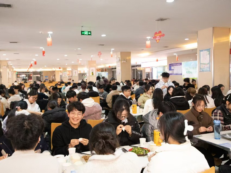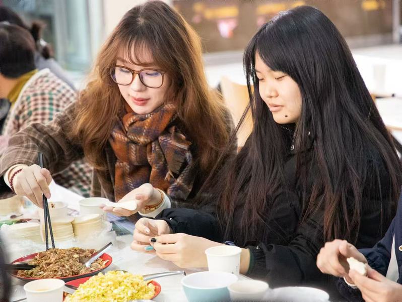 活动伊始,团学组织成员齐聚一堂,洗手挽袖,跃跃欲试。餐厅工作人员将提前准备好的包饺子所用材料,依次分发给各部门负责人。接着,各部门成员分别围坐一起,动手包起了不同馅料的饺子。顷刻间,形态各异却饱含心意的饺子便摆满了餐盘。在这期间,同学们还不忘拍下这难得的相聚时刻,有说有笑得等待自己亲手包的饺子出锅。随着饺子的香气在空气中弥漫开来,活动也迎来了高潮。大家边吃边聊、欢声笑语不断,冬日的寒冷早已被这温馨欢乐的氛围驱散,整个餐厅充满了温馨和欢乐的气氛。最后,团学组织全体成员合拍了照片。这些照片不仅记录了同学们欢聚一堂的温馨时刻,更成为了大家心中宝贵的回忆。