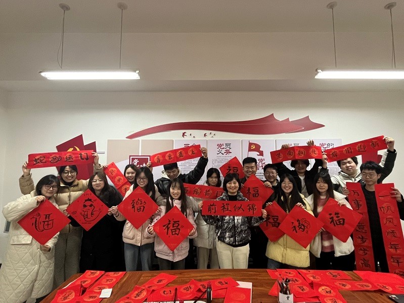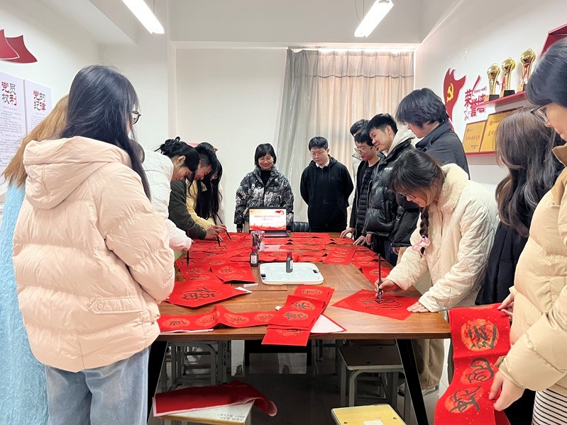 为深入学习贯彻新时代中国特色社会主义思想,弘扬中华民族优秀传统文化,表达对祖国的热爱和祝福,软件学院本科生第八党支部于2024年12月23日在向学楼410教室开展了“迎春送福写春联,翰墨飘香颂党恩”主题党日活动,本次活动由支部书记李敏主持,支部全体党员参加。