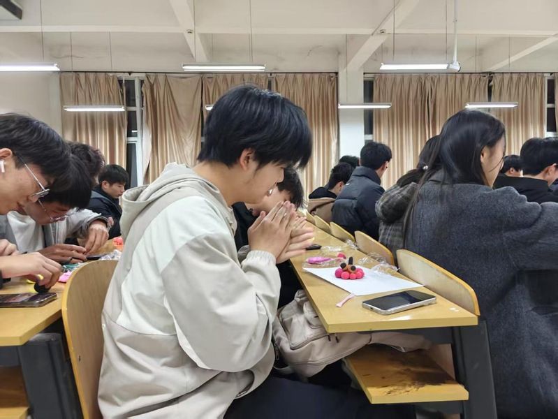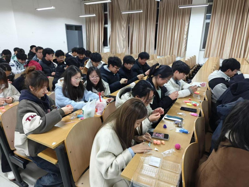 本次活动将趣味与挑战巧妙融合。活动前夕,班干部提前准备好歌曲伴奏和彩色黏土。活动当日,同学们随机分组,迅速破冰。听歌识曲环节,小组凝神细听,凭借对音乐的热爱与敏锐感知抢答激烈,旋律声、欢笑声交织。紧接着的黏土创作,大家分工协作,指尖翻飞,诞生诸多创意作品。活动结束后,裁判认真统计每组的得分并进行排名。最终,在两个环节中得分最高的小组均获得了班级精心准备的奖励。
