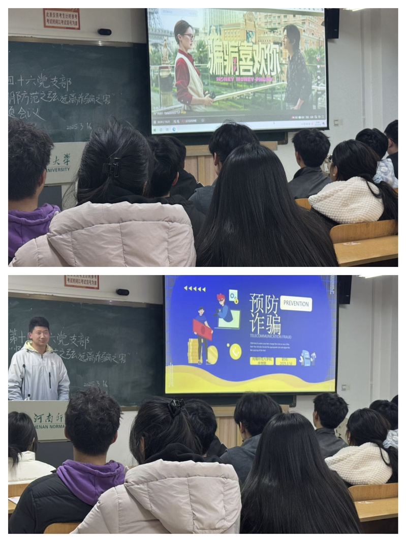 为深入贯彻落实校园安全教育工作要求,全面提升学生反诈防骗能力,2025年3月18日,软件学院本科生第十四、十六党支部于向真楼207教室联合举办“紧绷防范之弦,远离诈骗之害”主题党日活动,通过“沉浸式观影+案例解析+互动研讨”三位一体的创新模式,覆盖2024级网络工程(数据安全、嵌入式开发方向)专业6个班级,累计参与学生340余人,切实推动反诈教育走深走实。