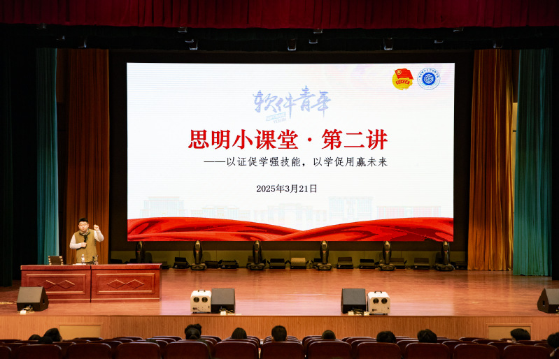 为帮助软院学子启迪思维、开拓视野,进一步明确学习努力方向与职业发展目标,3月21日,软件学院于平原湖校区一号报告厅举办“思明课堂”第二讲——以证促学强技能,以学促用赢未来,学院团委书记李淳主讲, 2023、2024级学生代表近300人参会。