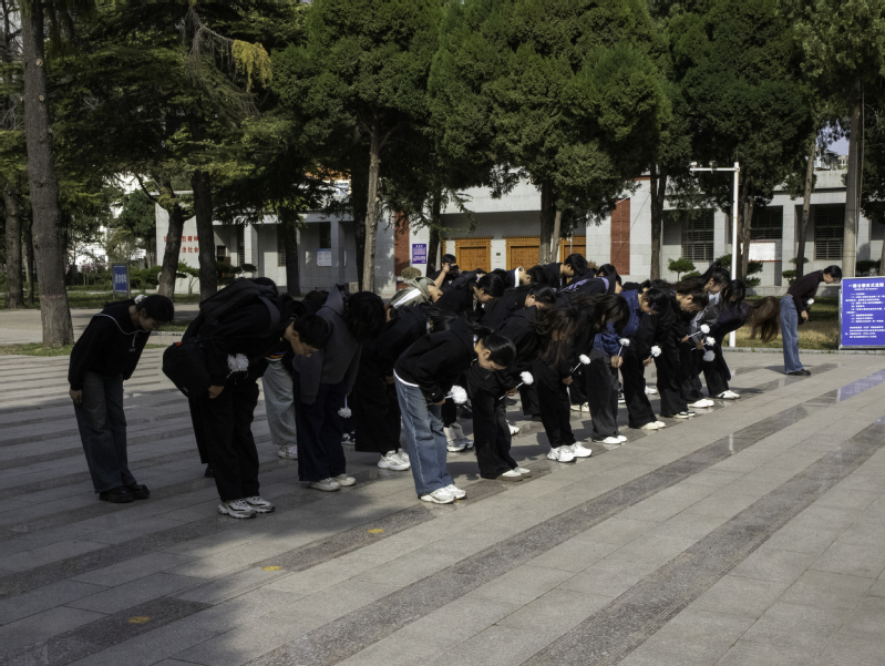 活动伊始,全体成员在向真楼前国旗下集合,活动负责人详细讲解注意事项、清点人数后,带领大家一同前往新乡市烈士陵园。抵达陵园后,成员们在正门集合,有序列队入场,庄严的烈士公祭仪式随即展开。首先,志愿者们满怀敬意走进陈列馆,大家静静的看着墙上的照片和文字,被先烈的事迹深深打动着。随后,志愿者们移步烈士纪念碑前,《献花曲》缓缓奏响,寄托着无尽哀思,学生代表向烈士敬献花篮并仔细整理缎带,全体人员向烈士行三鞠躬礼,表达深切悼念。紧接着,激昂的《中华人民共和国国歌》奏响,全体人员肃穆而立,以歌声向祖国和先烈致以敬意。歌声落下,学生代表宣读祭文,字句间饱含对先烈的深切缅怀与崇高敬意。仪式的最后,大家怀着崇敬之情有序瞻仰烈士纪念碑与雕像,深深体悟英雄们无私的奉献与牺牲精神。