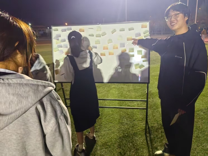 活动伊始,组织成员将大家聚集在一起介绍活动内容与注意事项,分发活动材料并进行拍照,锦句留笺、文识趣转、飞花令等一系列活动就此拉开序幕。在“锦句留笺”活动中,同学们在便利贴上写下个人认为优美的句子,粘贴在展板上和他人分享。随后,“文识趣转”活动中,参与者通过转盘回答问题,题目涵盖古典诗词、文学常识与历史典故,大家争相抢答,现场气氛紧张而热烈,展现出扎实的文学功底与敏捷的思维。紧接着,“飞花令”环节将活动推向高潮,同学们以“春”“月”“花”等主题字展开诗词接龙,大家对答如流,掌声与喝彩声此起彼伏。最后,“妙语连珠”创意写作环节中,同学们共同创作微型散文,用文字抒怀,作品分享环节引发了阵阵赞叹。