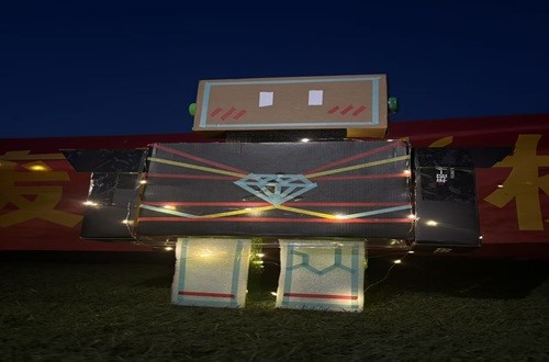 夜幕降临,操场上的灯光照亮了整个活动场地。参赛作品在灯光的映衬下显得格外引人注目。观众们在欣赏作品的同时,对参赛者的创意和手工技艺表示了高度赞赏。