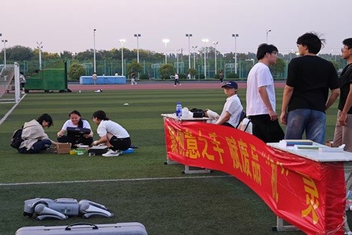 活动开始前,参赛者们在操场上准备各自参赛作品。他们利用废旧纸箱、塑料瓶等材料,通过创意和手工技巧,制作出各种机器人主题的作品。现场气氛热烈,参赛者们热情高涨,展现了软件学院学生的创新精神和团队合作能力。