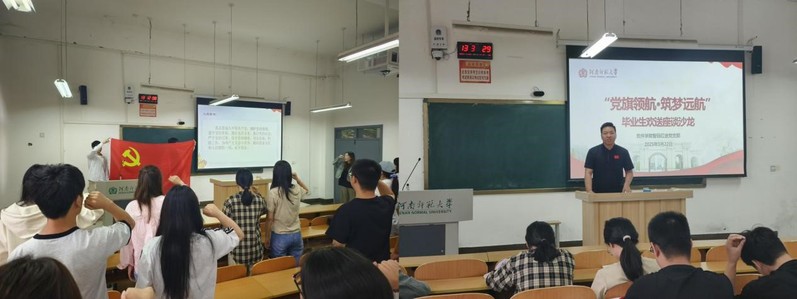 活动以“三个一”升华主题教育内涵:一面党旗铭刻初心使命,指引传承红色基因;一声誓言筑牢信仰之基,锚定奋斗坐标;一句嘱托激扬青春力量,续写强国篇章。最后支部为毕业生党员颁发镌刻姓名与入党时间的定制纪念章,并合影留念。