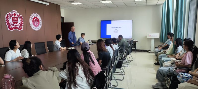 焦教授首先阐述了图表征及复杂网络的基本原理。其次,由简单图过度到复杂图,介绍了复杂图中的语义复杂、结构复杂、演化复杂三方面的特点,并以学术网络为例分别探讨了三者各自领域所面临的挑战及如何展开建模。最后,焦教授讲解了HIN拓扑预测并分享了其在科研中寻找Idea的想法。在场师生踊跃提问,与焦教授进行了深入探讨和交流。此次报告有助于学院师生了解复杂图领域的最新研究进展,进一步激发了学院师生的科研兴趣和活力。