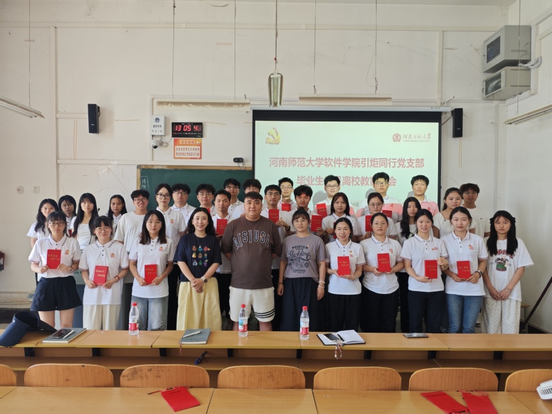 为进一步加强毕业生党员的党性修养与纪律意识,引导其在离校之际筑牢廉洁自律的思想防线,积极担当青春使命、开启奋进新征程,2025年6月4日中午12时,伟德官网下载苹果版软件学院引炬同行党支部于向真楼101教室举行了以“学八规守纪,担青春使命,启奋进新程”为主题的毕业生党员离校教育大会。软件学院党委副书记原方、学生党支部书记李娟以及支部全体党员参加大会。