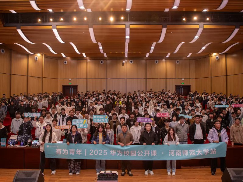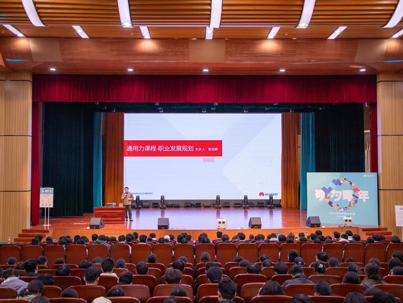 河南终端新乡区域城市总经理张旭峰以“通用力课程-职业发展规划”为主题展开分享。首先,他结合行业动态,详细解读当前IT行业技术岗位的核心能力需求,深入阐述科学的职业发展观,为学生搭建起“校园学习与职场需求”的认知框架。接着,他通过智能家电、车载设备等生活场景的具体案例,生动展示了华为在技术领域的核心优势与创新应用,并同步讲解华为的岗位特色与发展机遇,让学生直观感受行业前沿动态。分享过程中,张旭峰与现场同学积极互动,针对大家在学习成长中遇到的困惑精准剖析,结合真实职场环境给出针对性的认知建议与解决思路,现场氛围热烈。主题分享结束后,软件学院花粉俱乐部负责人介绍IP活动,该活动为同学们提供体验华为产品、参与专业赛事的实践平台,助力大家将理论知识与实际应用相结合。最后,华为特别设置线上抽奖环节,并为在场同学提供AITO问界汽车试驾机会,让同学们在亲身体验中感受前沿科技的魅力。