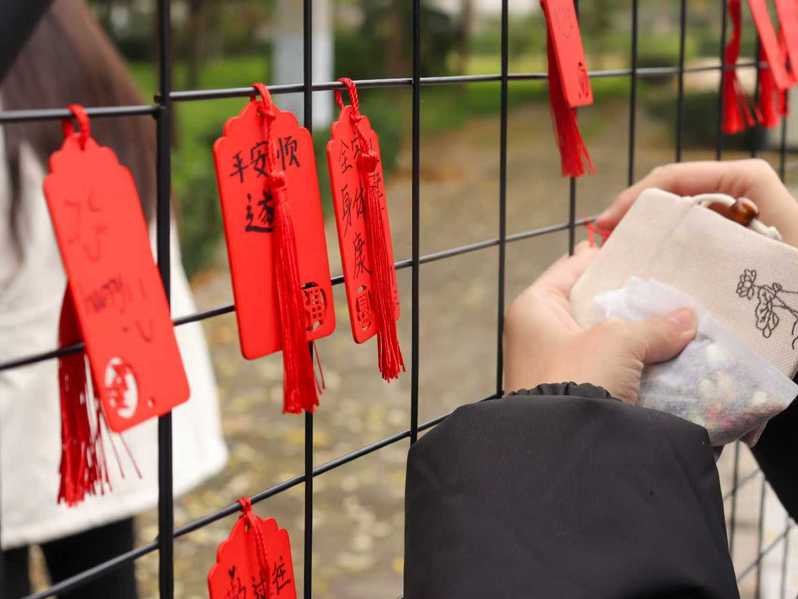 现场设置香囊制作区与心愿区两大区域,流程清晰有序。活动伊始,同学们在工作人员引导下,依次领取香囊袋、多样香料及心愿牌基底,沉浸式投入手工创作。在香囊制作区,大家根据喜好搭配艾草、薰衣草等香材,细心填充、整理,亲手打造独一无二的专属香囊,同时,在心愿区里,参与者伏案写下对学业进步、生活顺遂的美好期许,将承载心愿的心愿牌整齐悬挂,构成一道温馨别致的风景线。活动期间,同学们在动手实践中交流香材特性与制作技巧,现场氛围轻松融洽。冬韵初显,暖意先行,本次香囊DIY活动将中华传统民俗文化与校园生活有机结合,以活动为媒,承文化之美,是传统与青春的双向奔赴,参与的同学纷纷表示亲手制作香囊的过程既有趣又治愈,看着自己的作品,满满的成就感油然而生。
