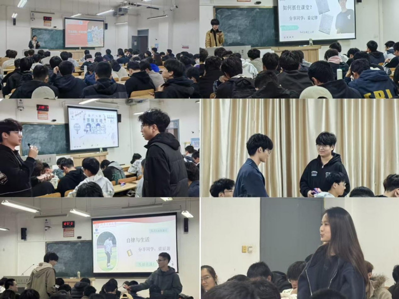 活动前期,班委会通过匿名线上调研问卷,分类梳理高频问题与挂科同学的具体诉求,确保交流会靶向发力、精准施策。交流会当天,主持人周桓羽首先总结调研结果,清晰呈现了同学们在学习中面临的核心痛点。随后,成绩优异的学生代表姜定律、梁辰萧、杨韶依次登台,结合自身学习实践,分享了高效学习方法,内容详实易懂、可操作性强。在答疑互动环节,参会同学主动提出个人困惑,分享者耐心细致解答,现场交流氛围热烈融洽。