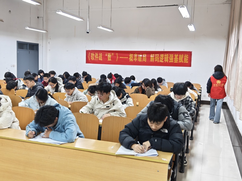 为持续巩固2024级学生数学学习成效,深化“以考促学、互助共进”的系列活动理念,进一步发挥党建引领作用与学生主体能动性,11月18日晚,软件学院2024级在平原湖校区向真楼开展《软件战“数”》概率论期中测验活动。本次活动以“党员带头、学生自主、辅导员护航”为特色,延续系列活动优良传统,为学风建设再添新动能。