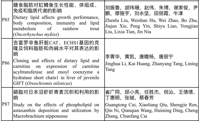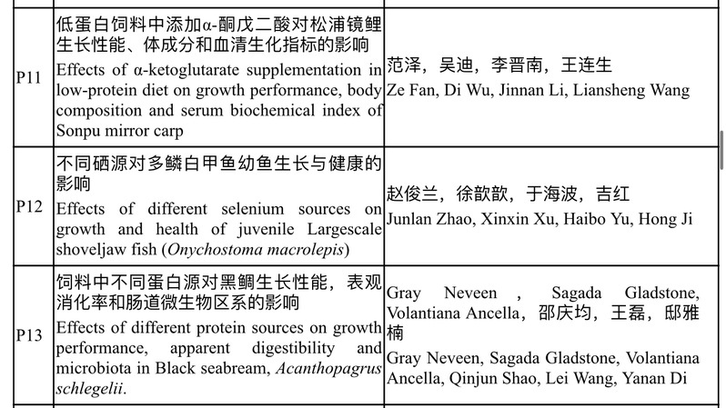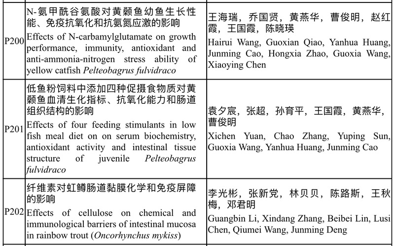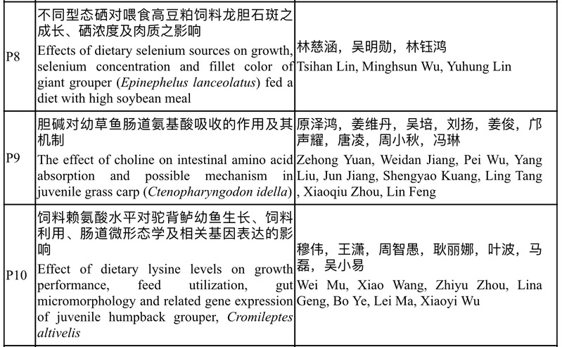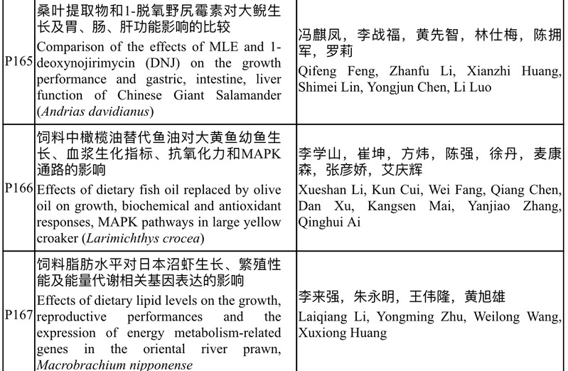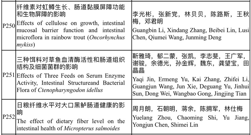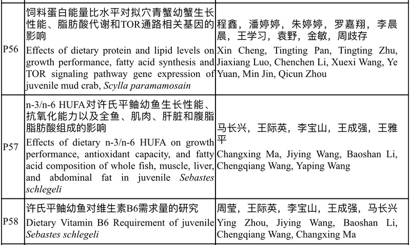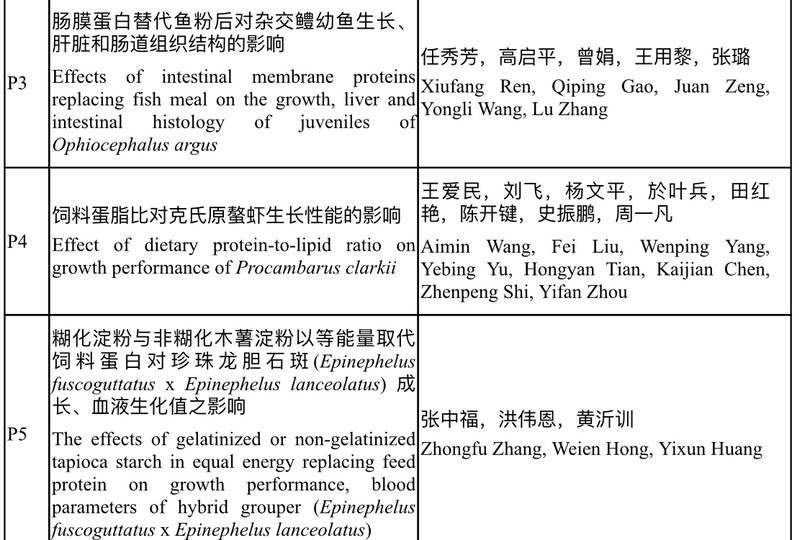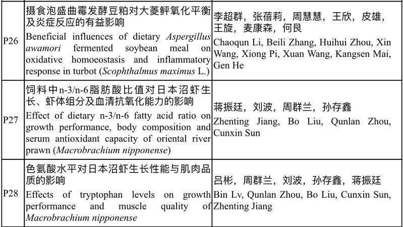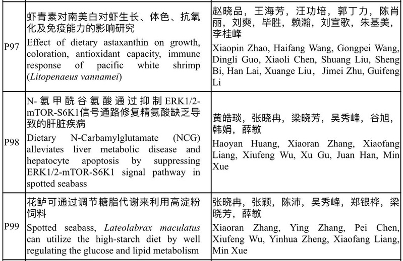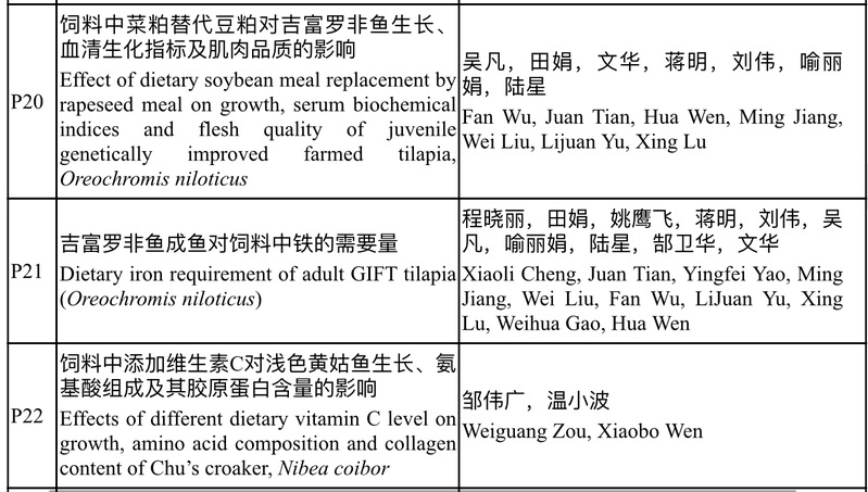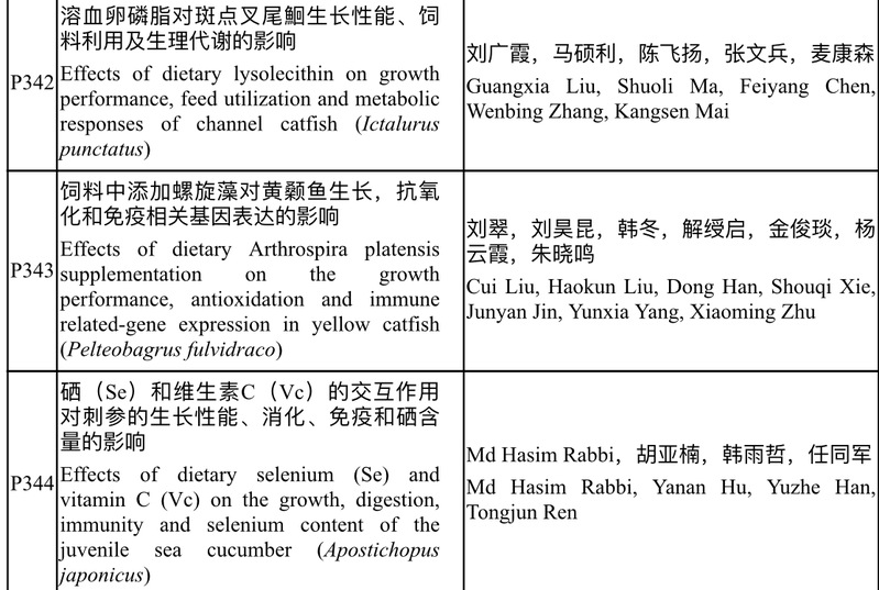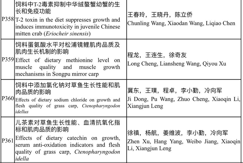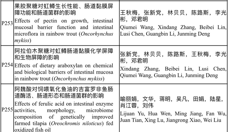 第十二届世界华人鱼虾营养学术研讨会墙报目录