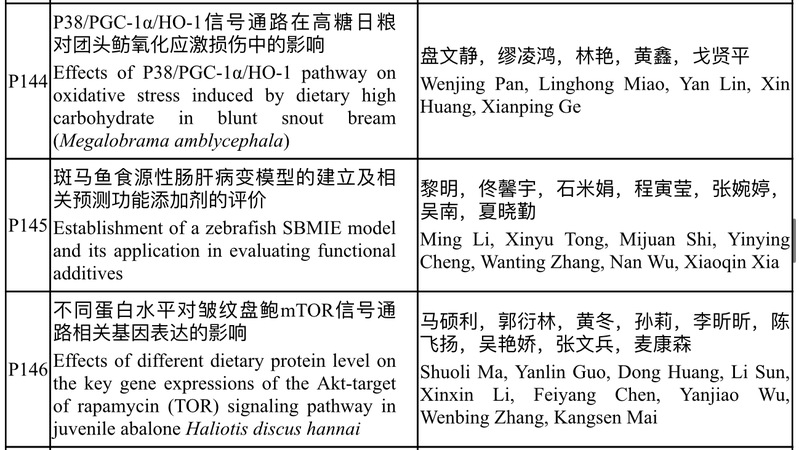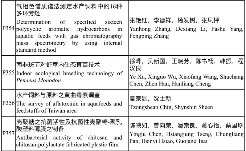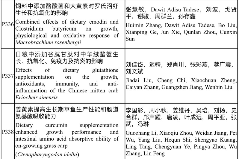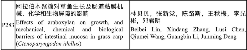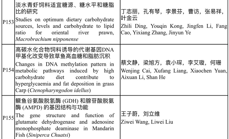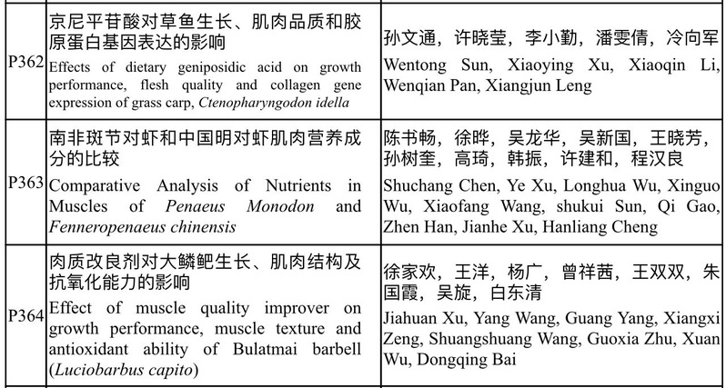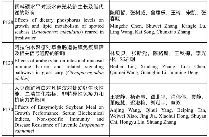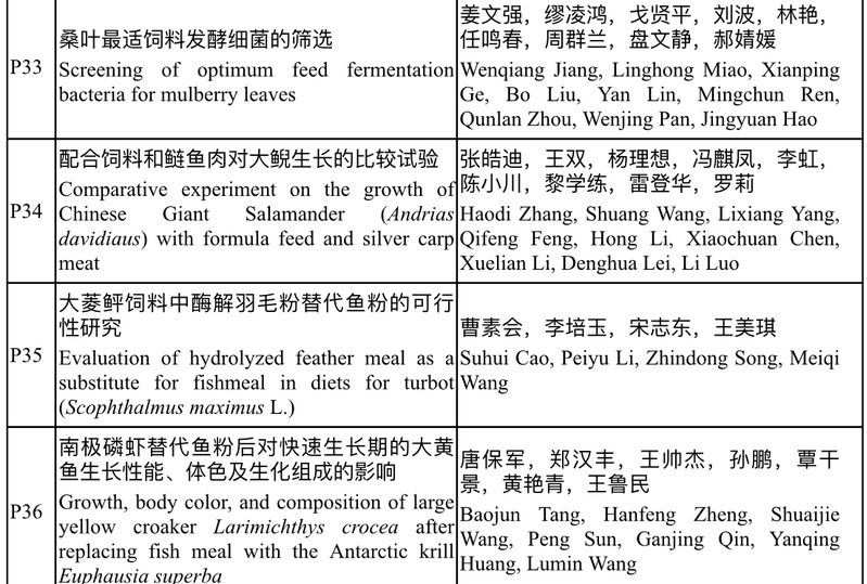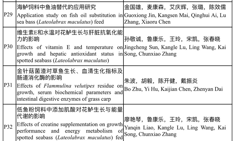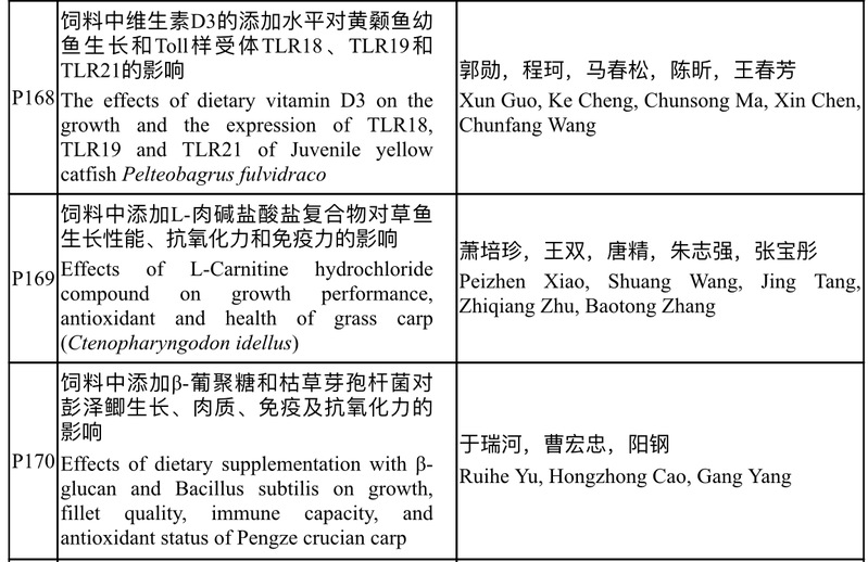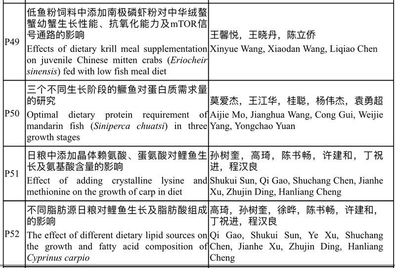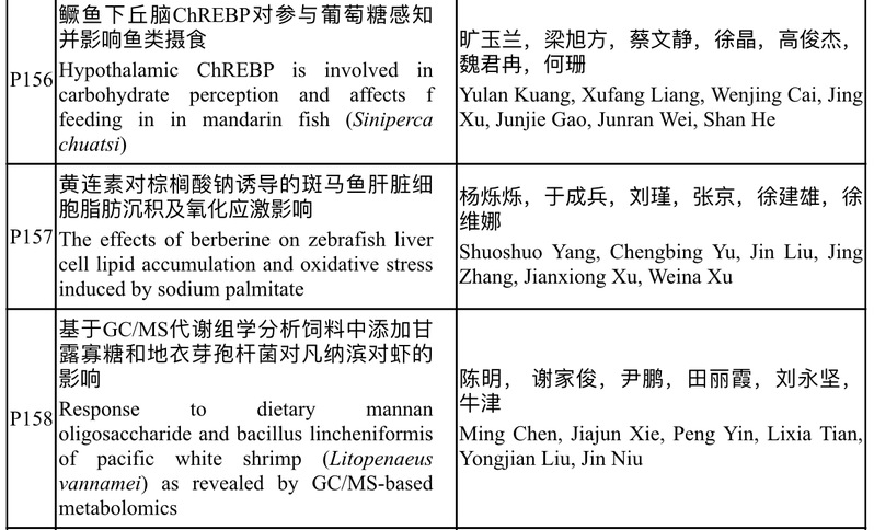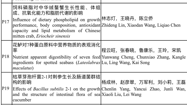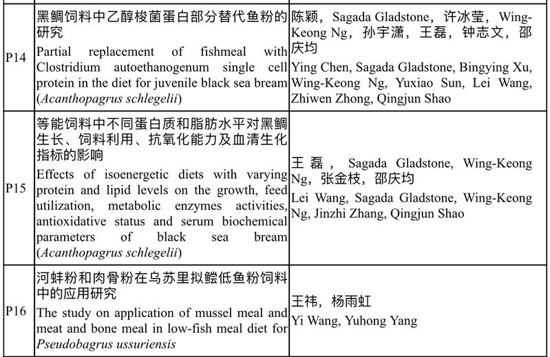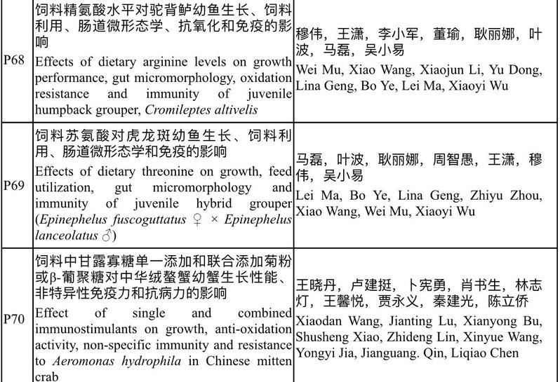 第十二届世界华人鱼虾营养学术研讨会墙报目录