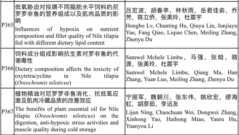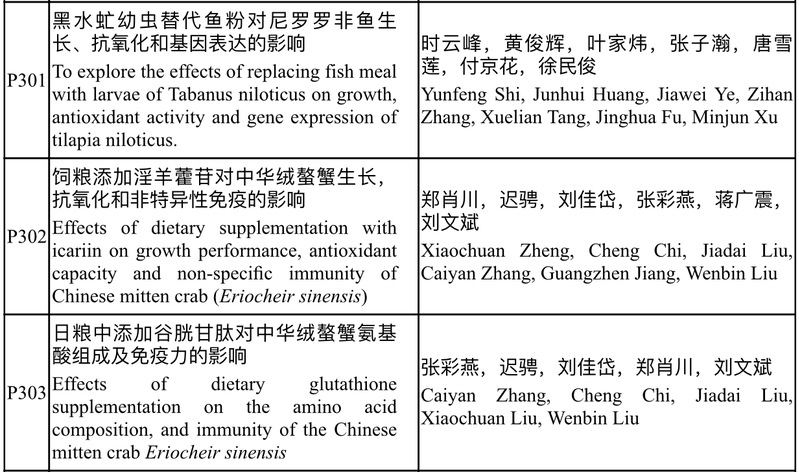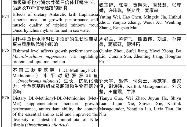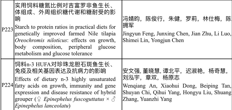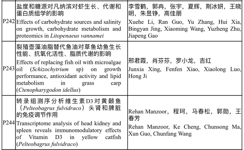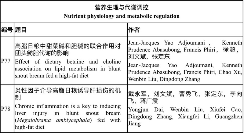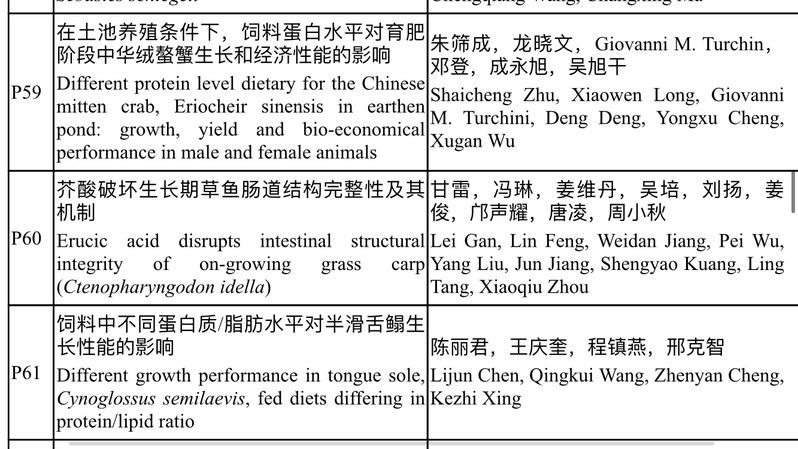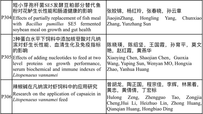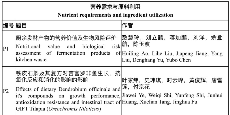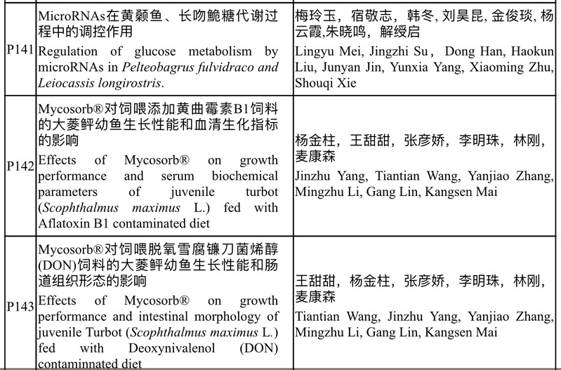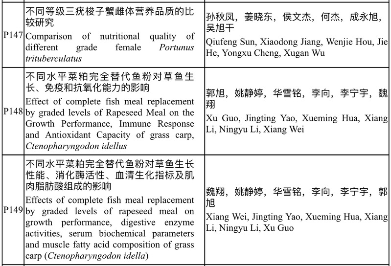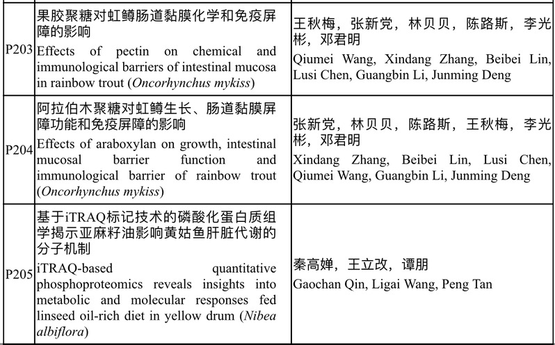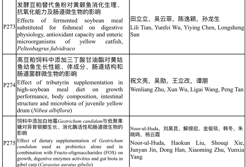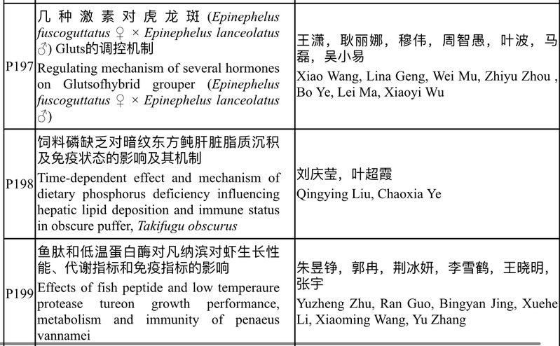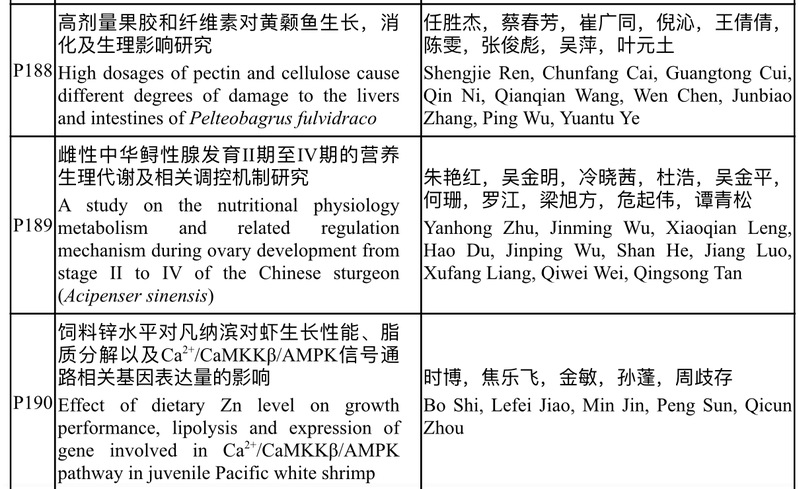 第十二届世界华人鱼虾营养学术研讨会墙报目录