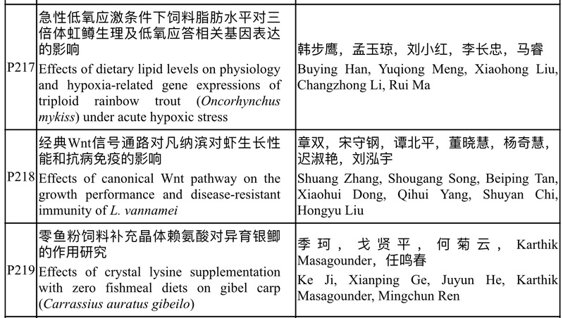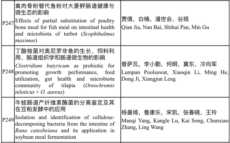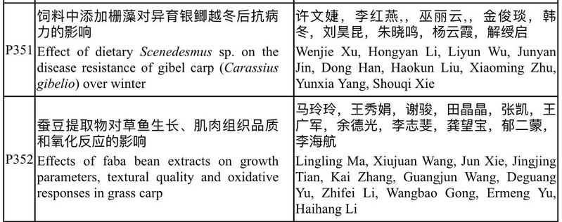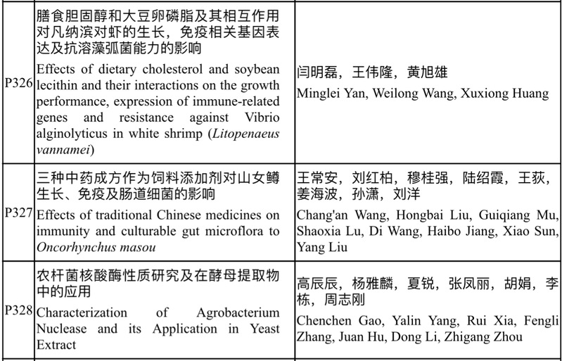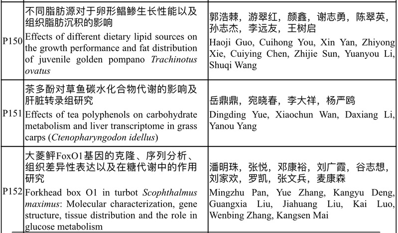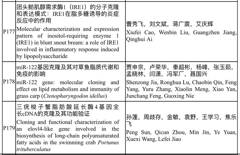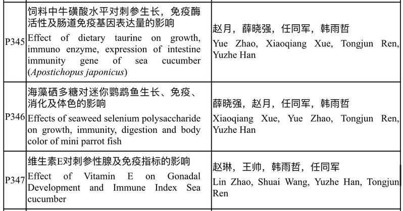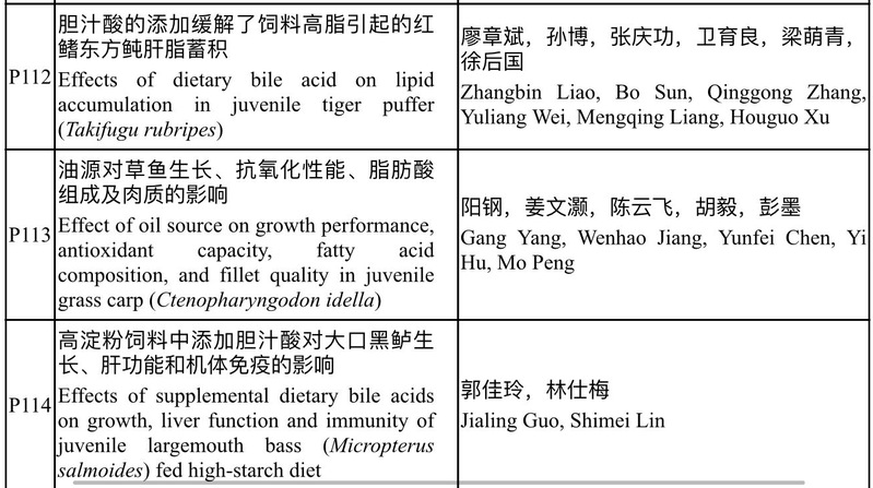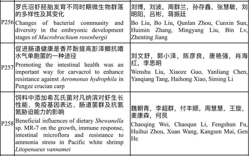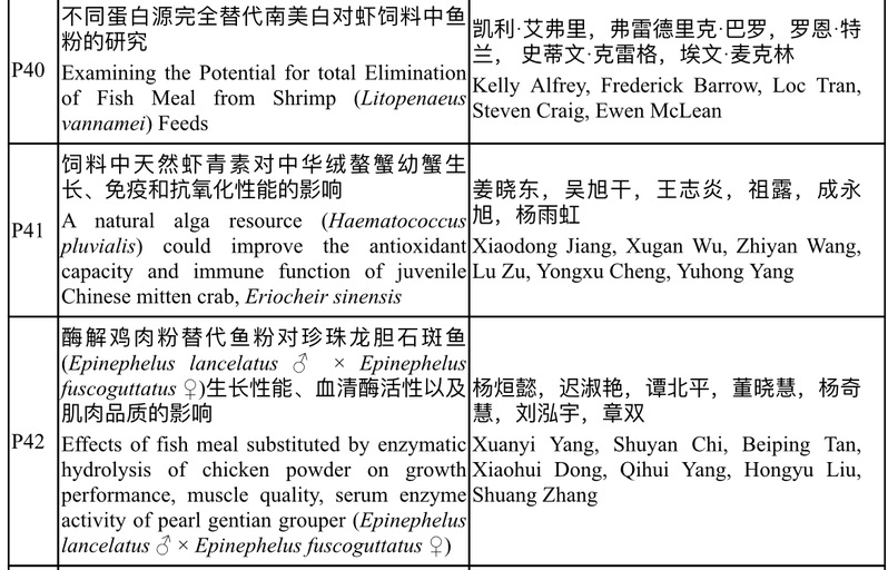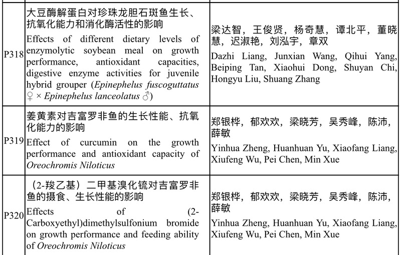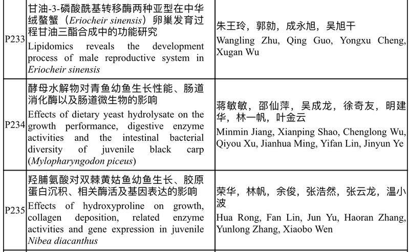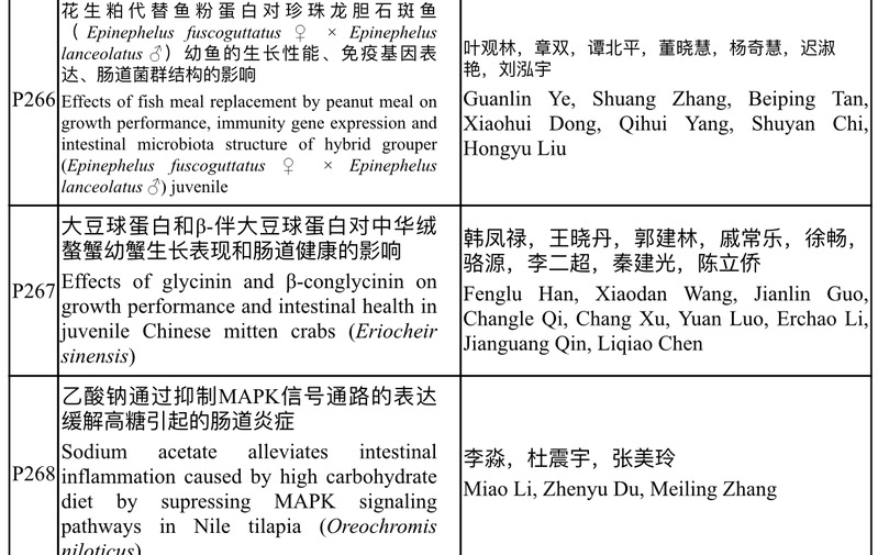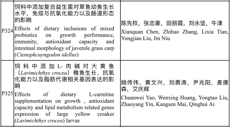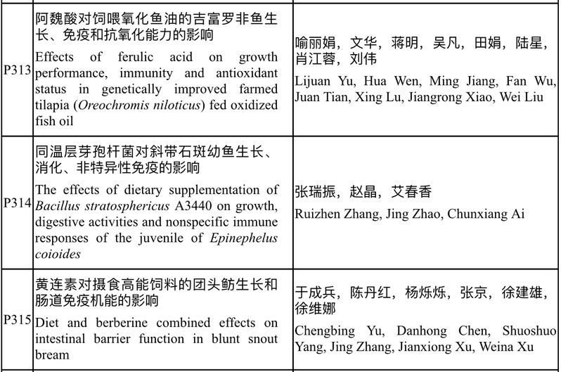 第十二届世界华人鱼虾营养学术研讨会墙报目录