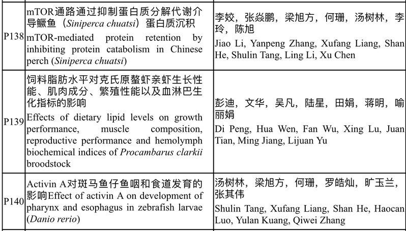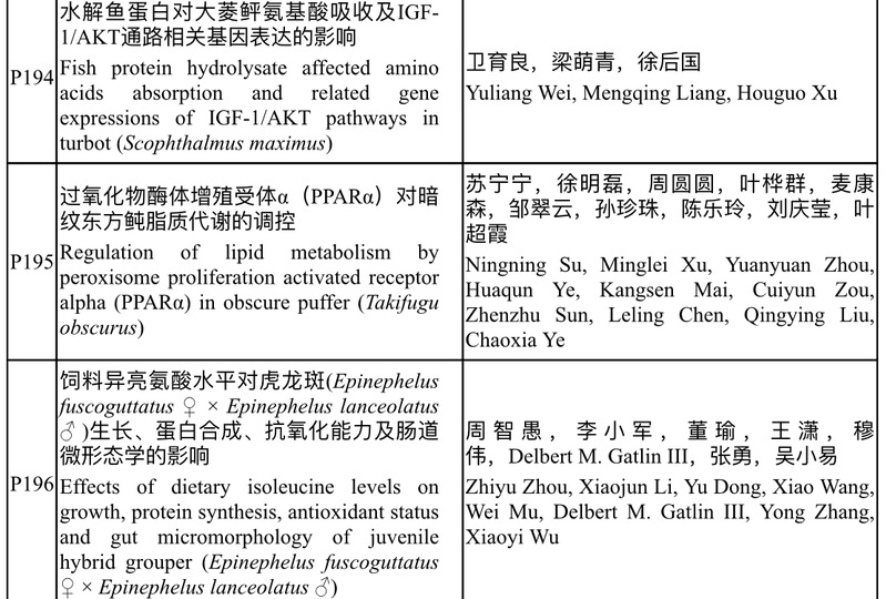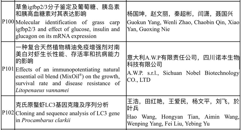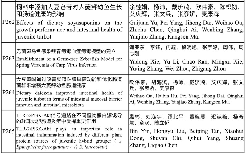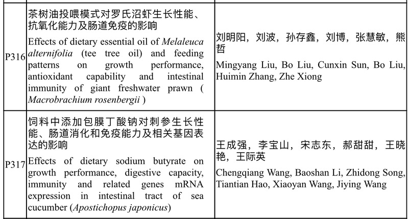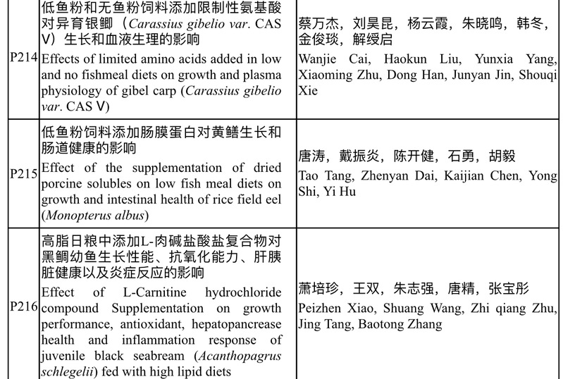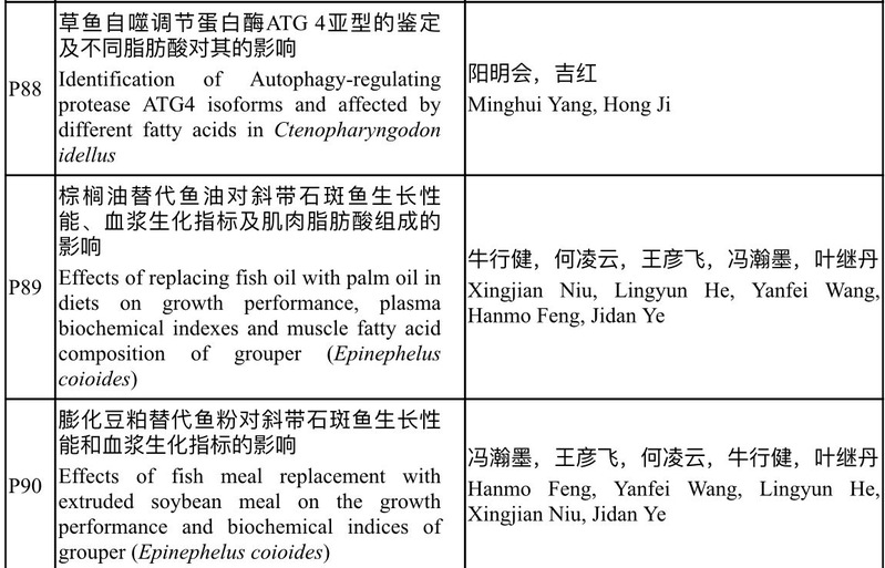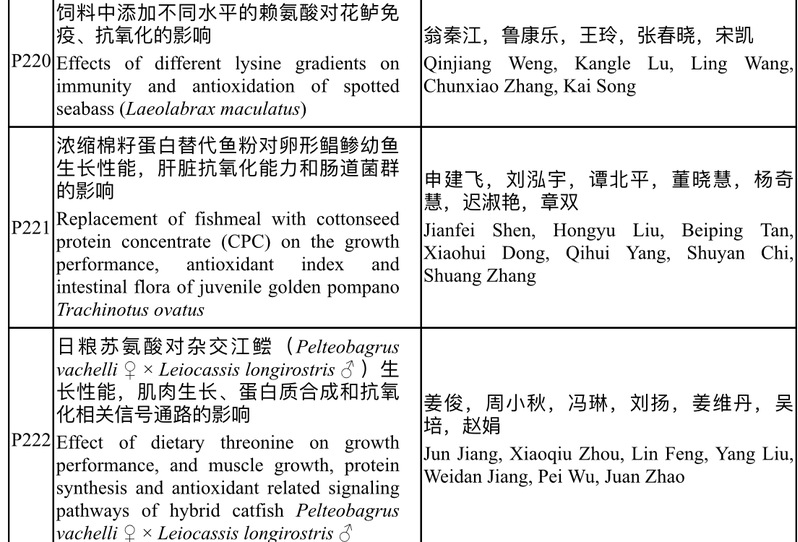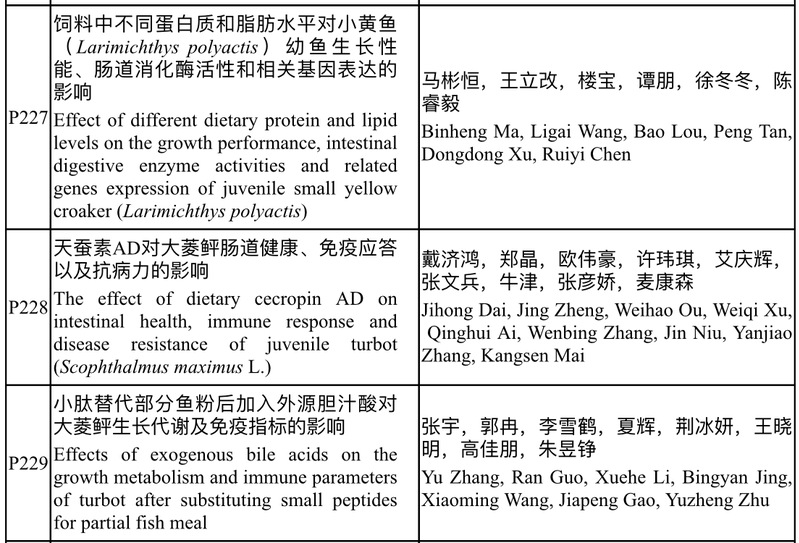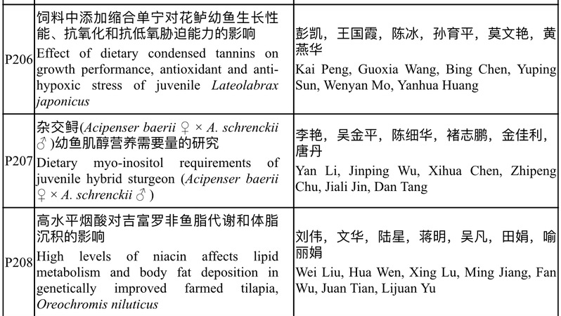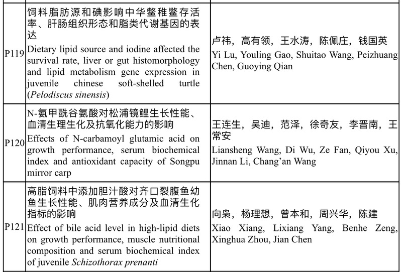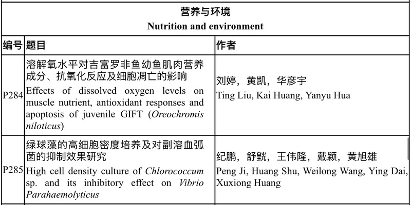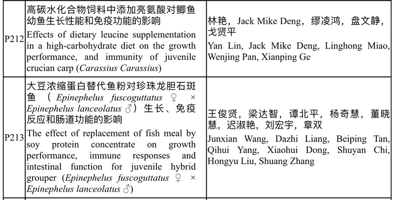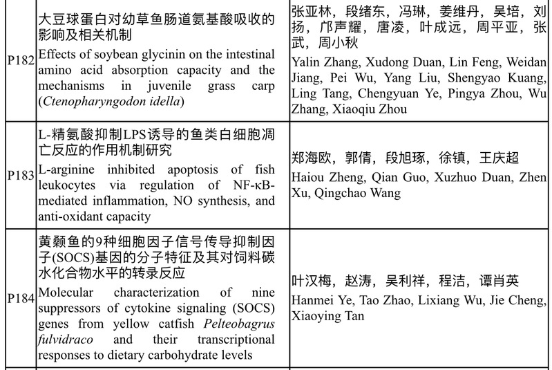 第十二届世界华人鱼虾营养学术研讨会墙报目录
