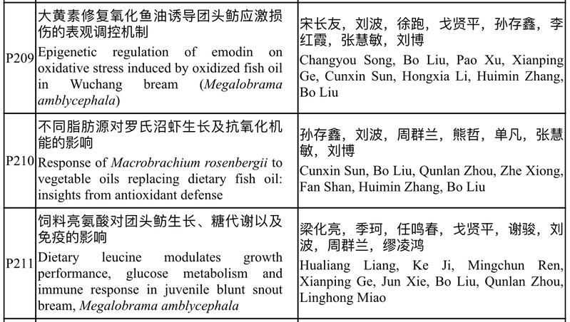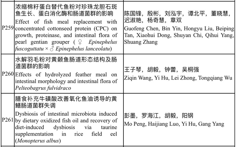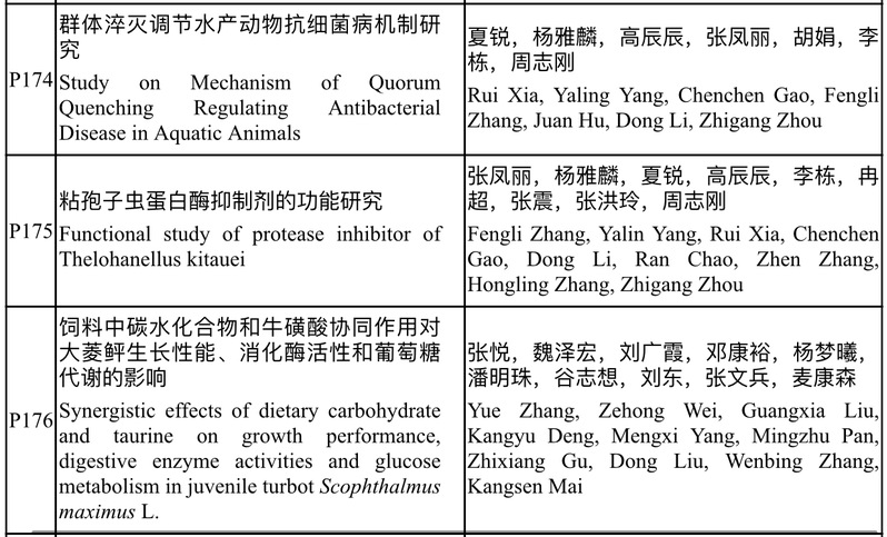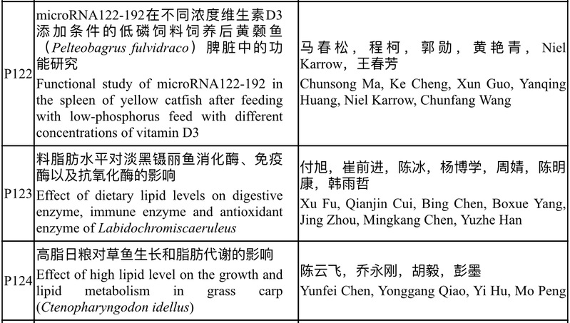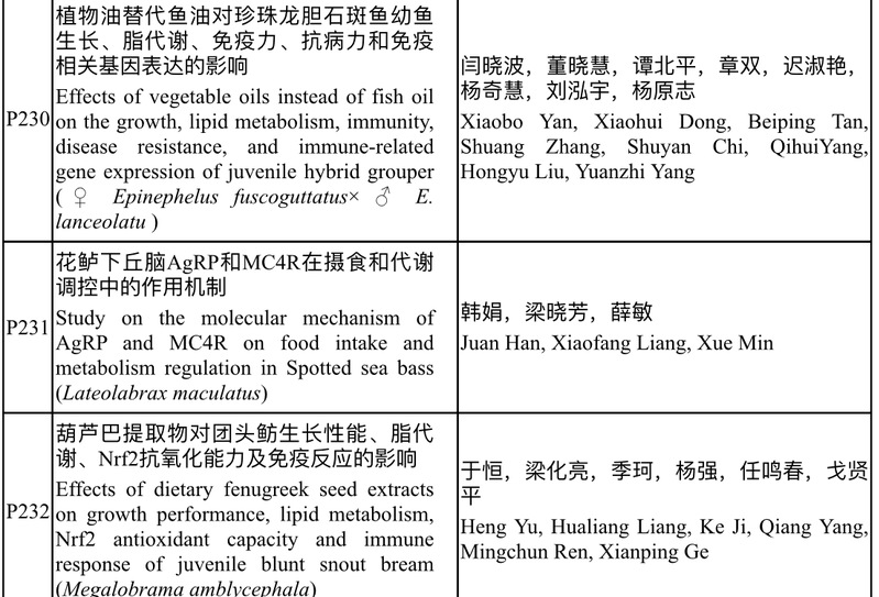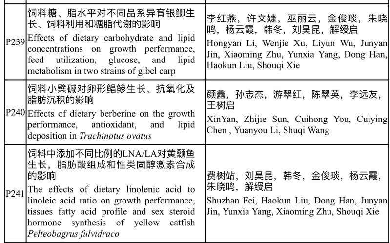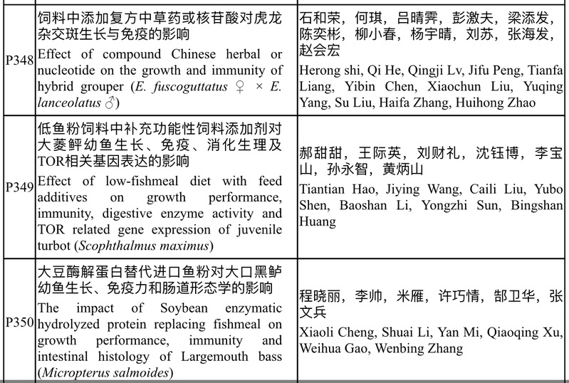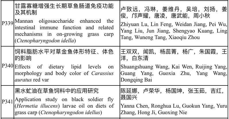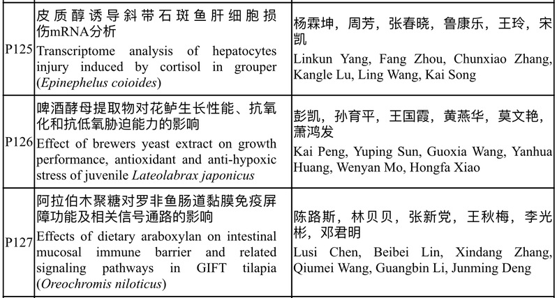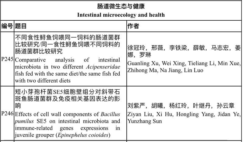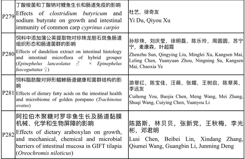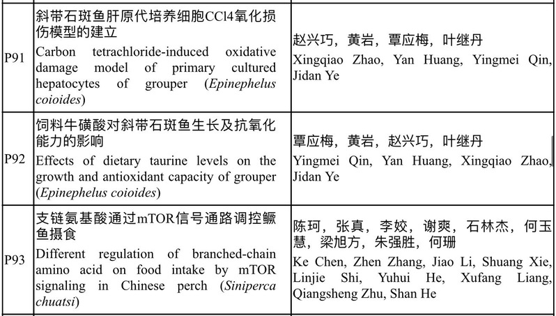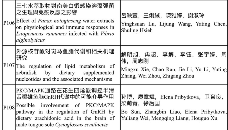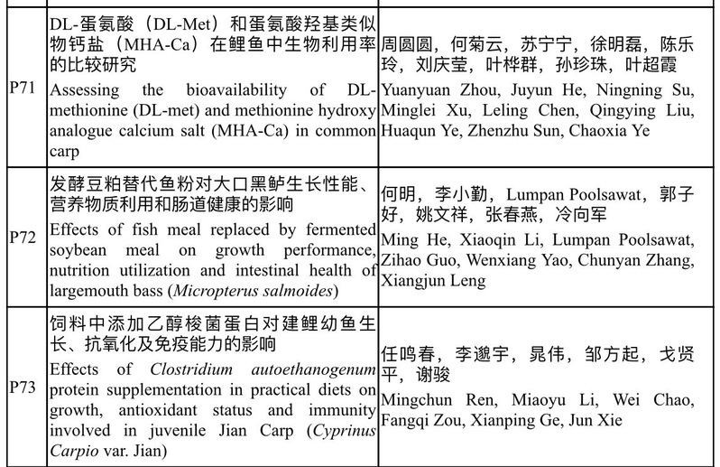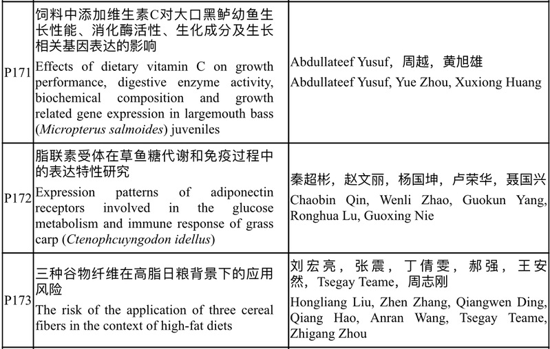 第十二届世界华人鱼虾营养学术研讨会墙报目录
