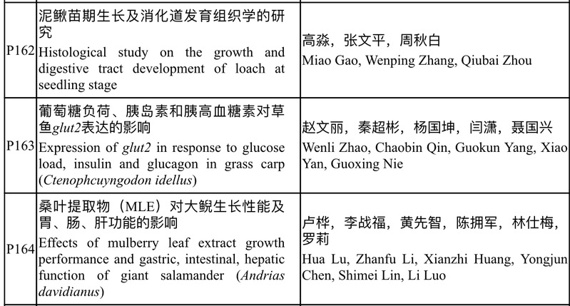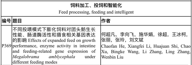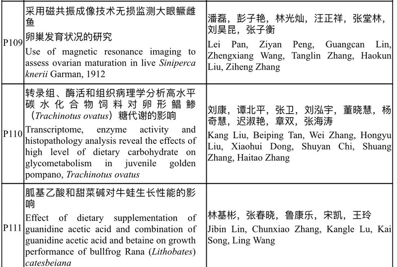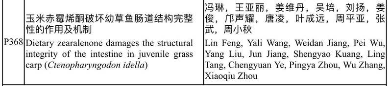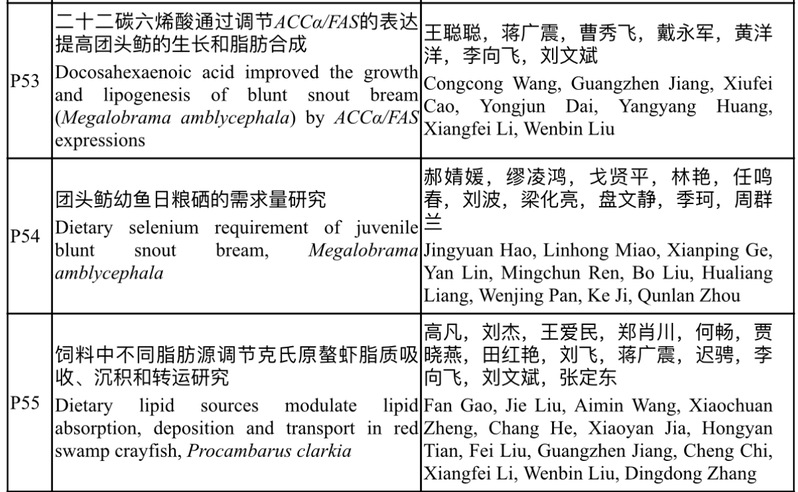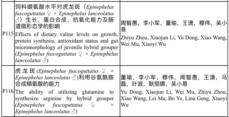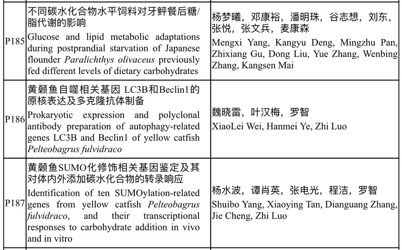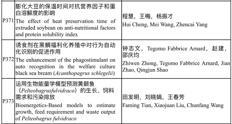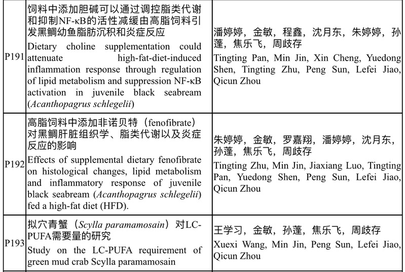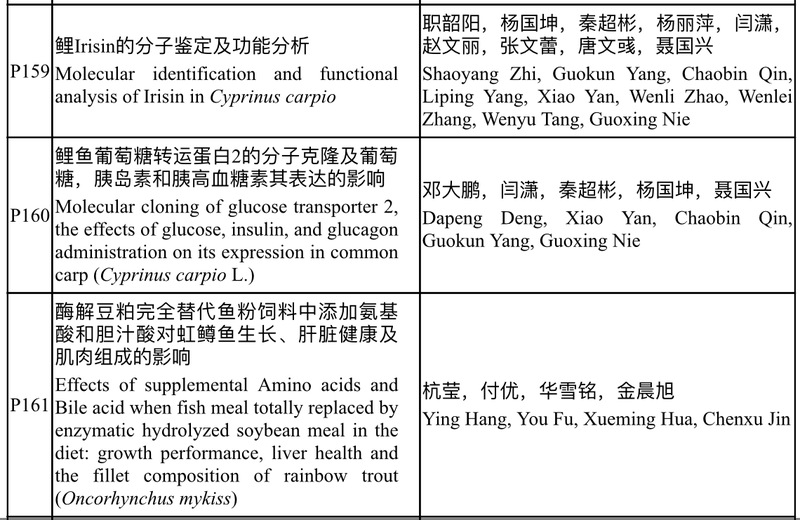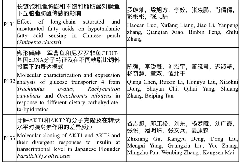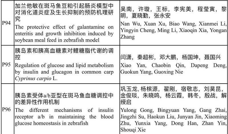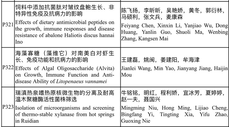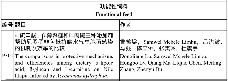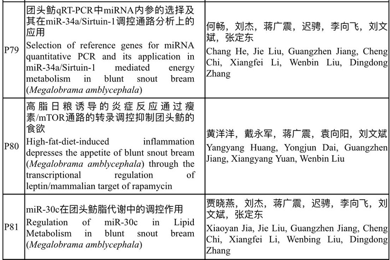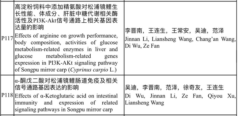 第十二届世界华人鱼虾营养学术研讨会墙报目录