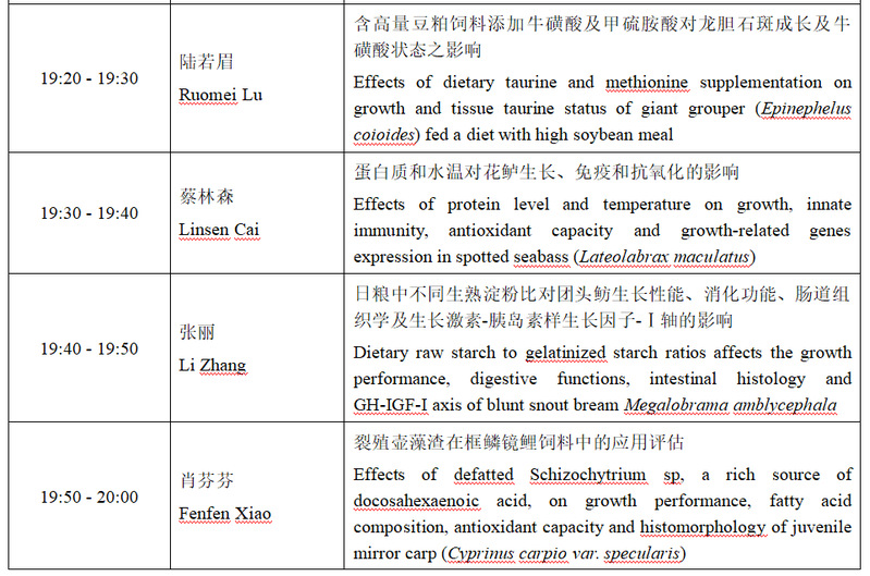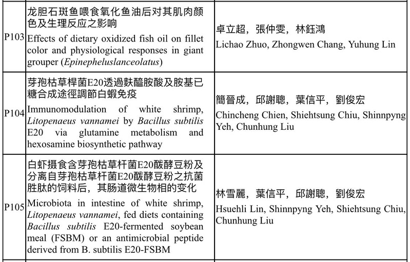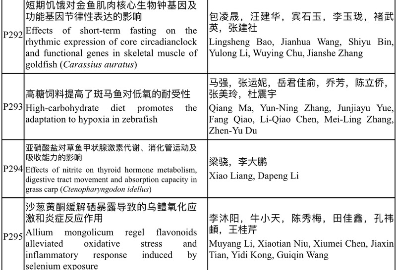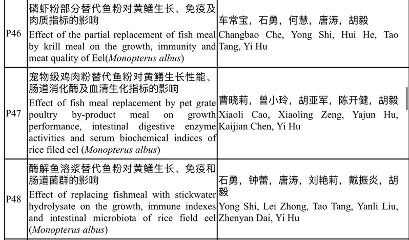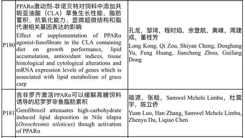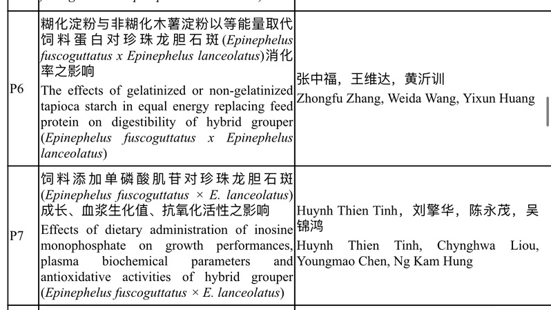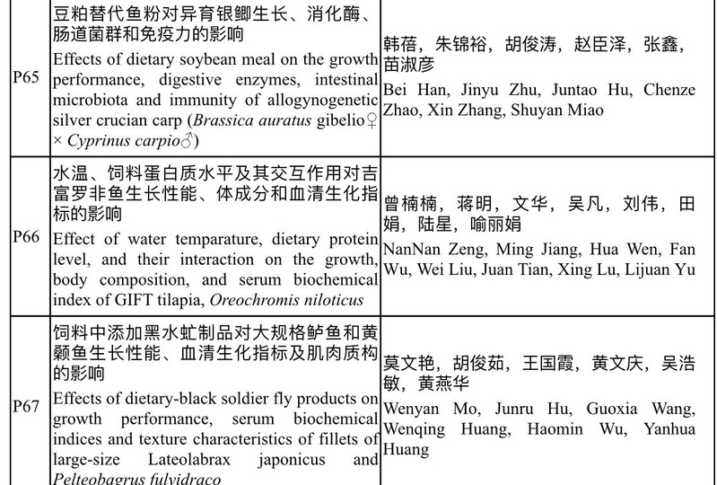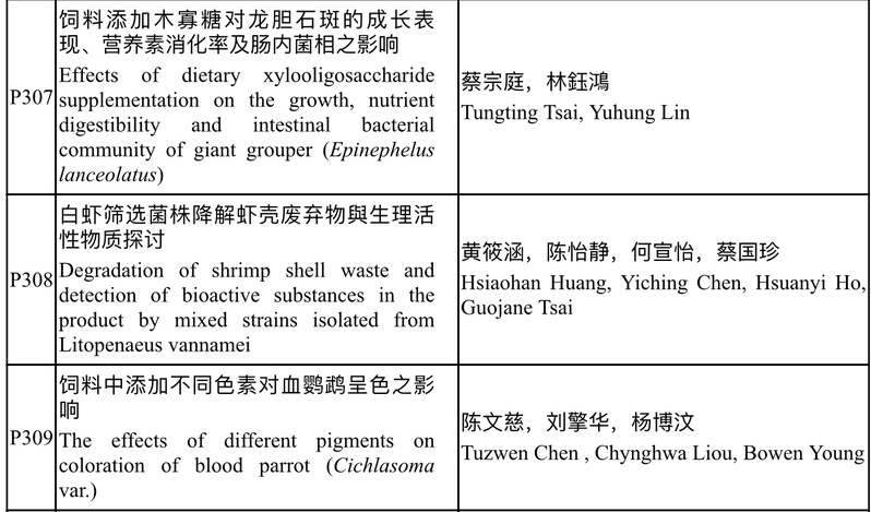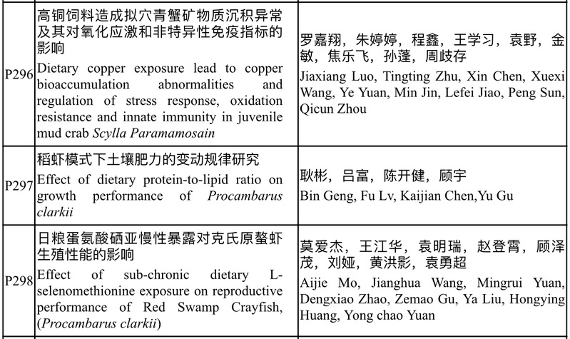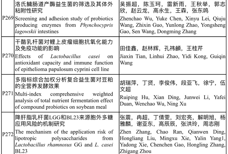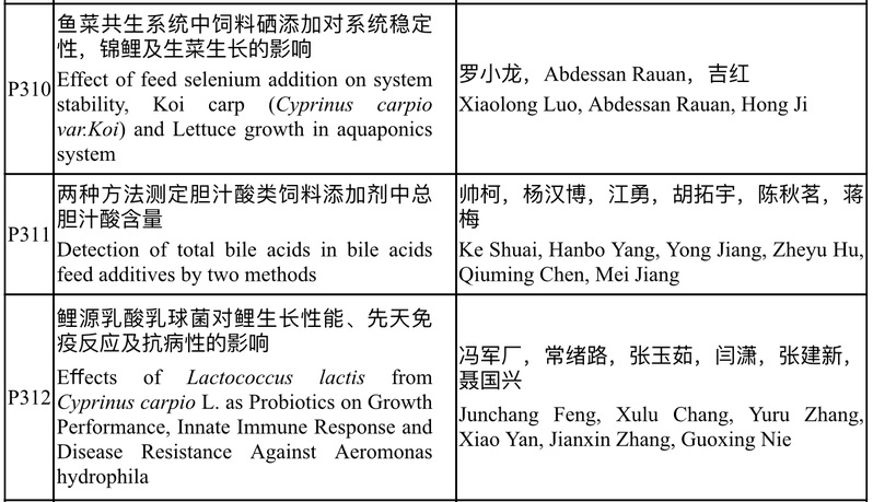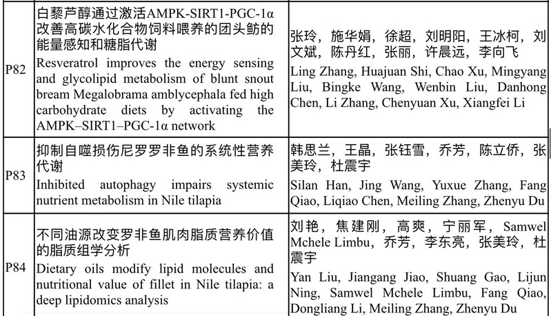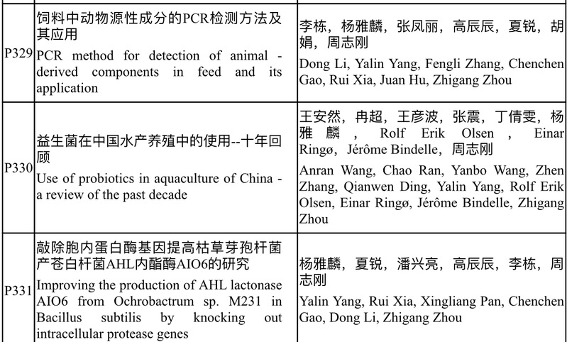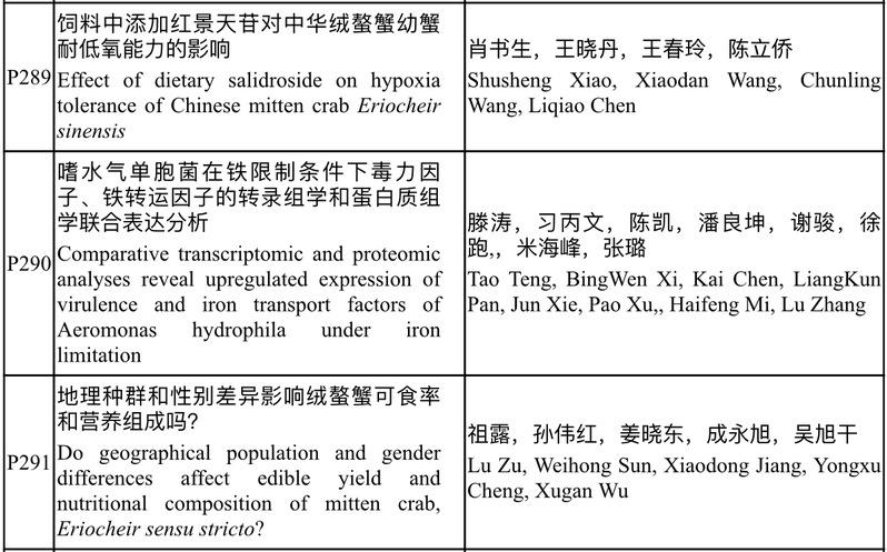 第十二届世界华人鱼虾营养学术研讨会墙报目录