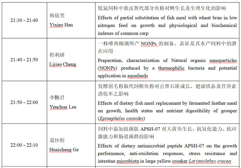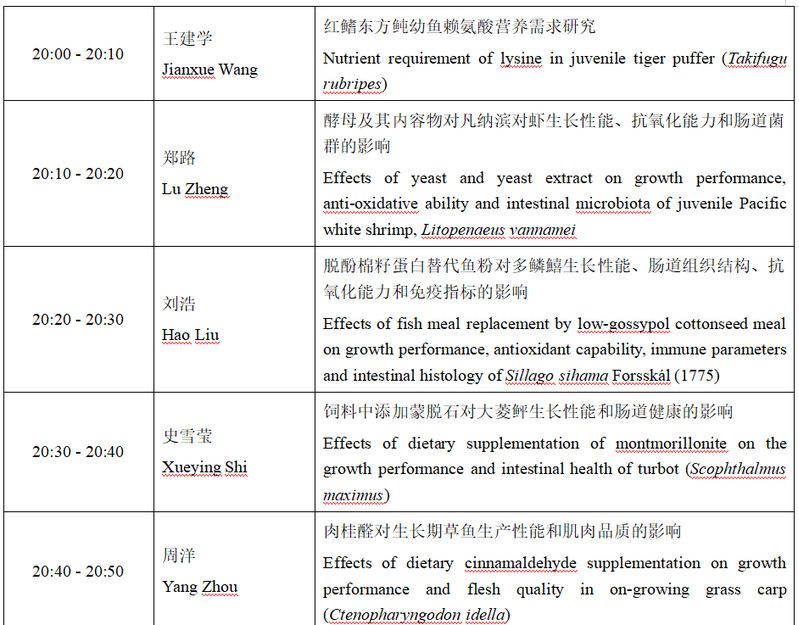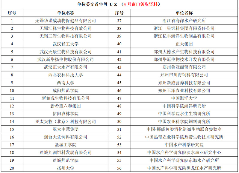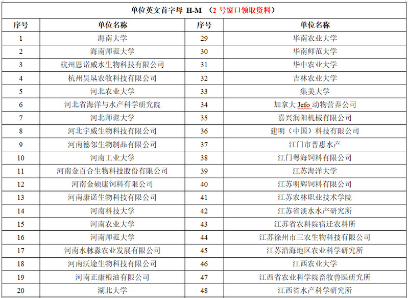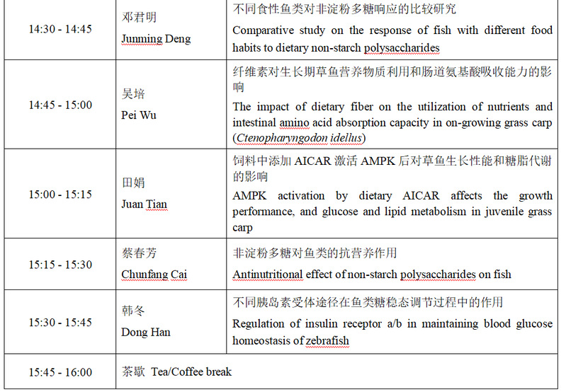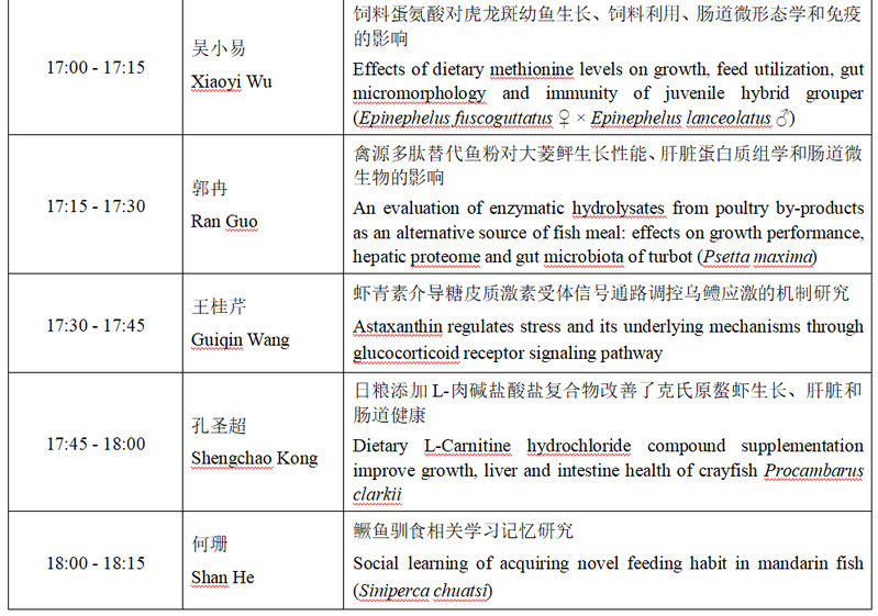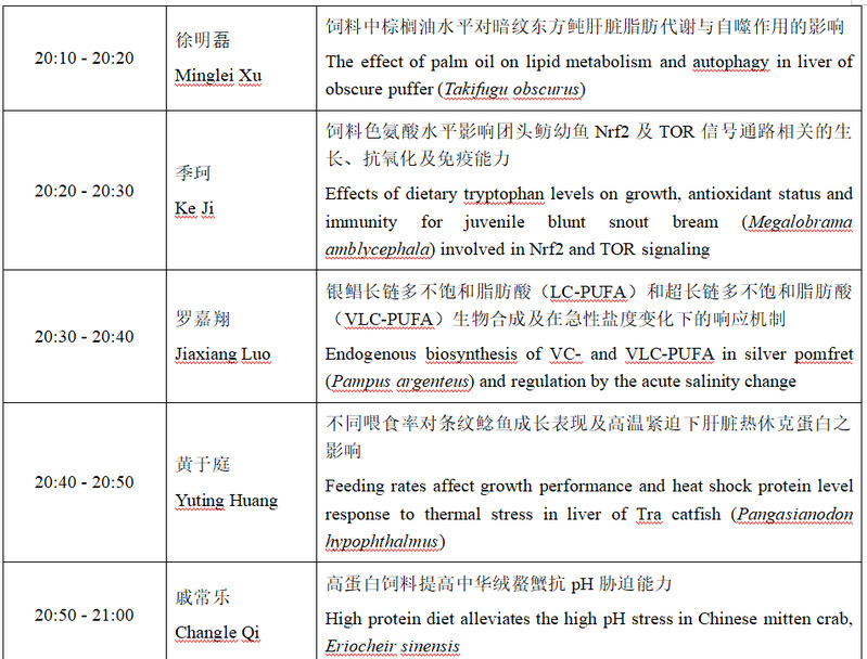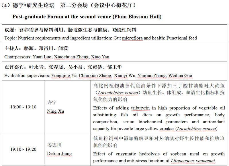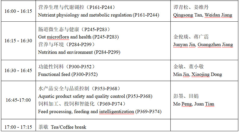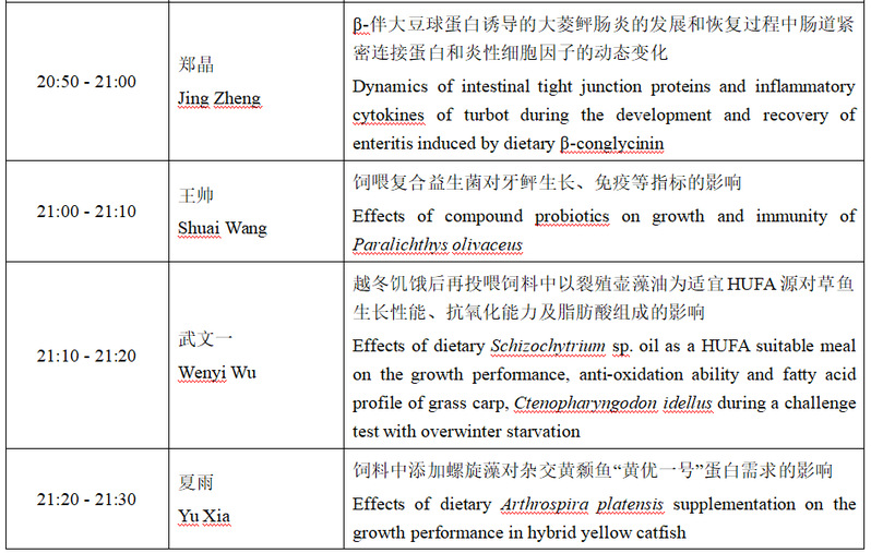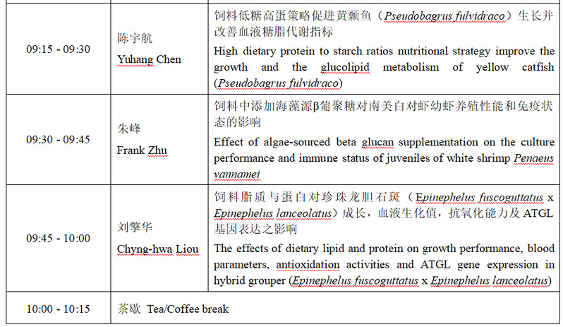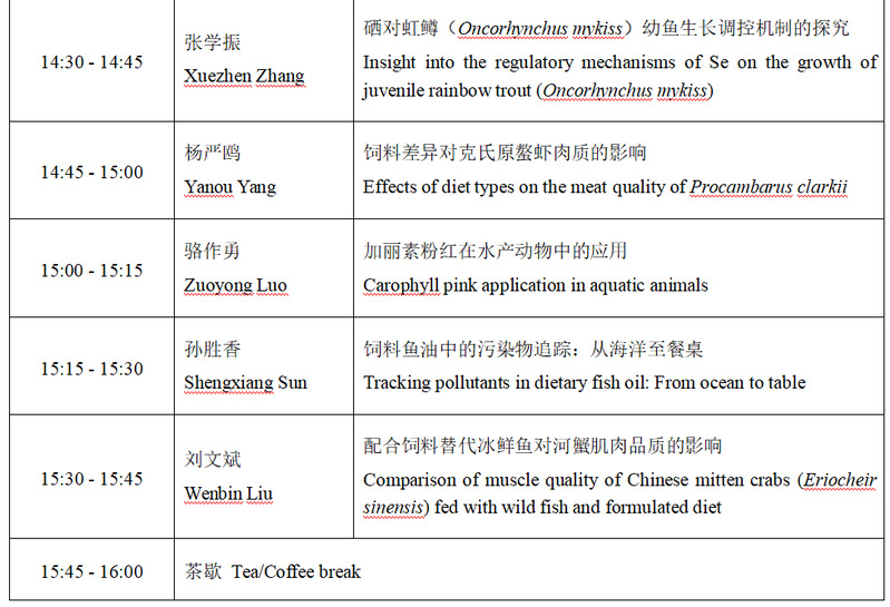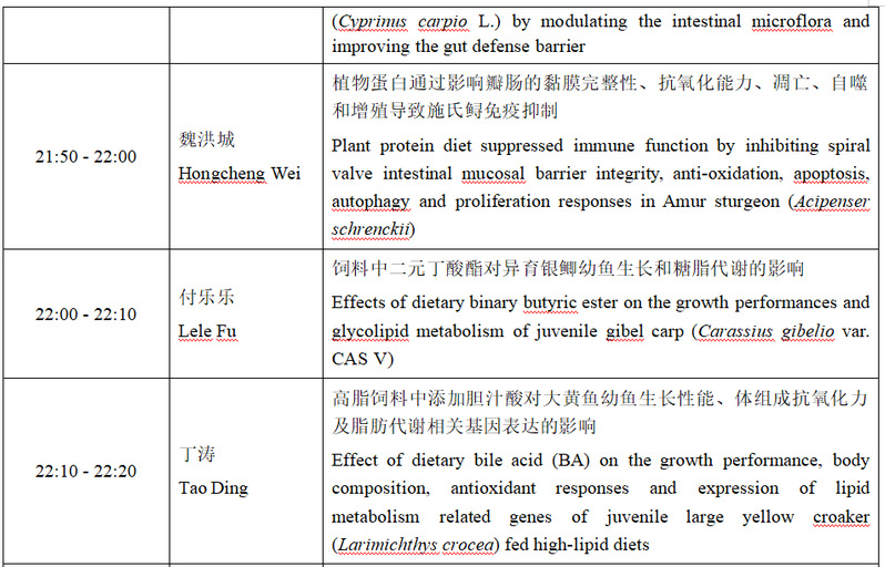 第十二届世界华人鱼虾营养学术研讨会墙报目录