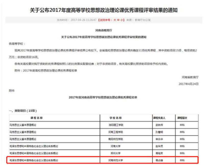 2017年度河南省思想政治理论课优秀课程 ~ 蒋占峰