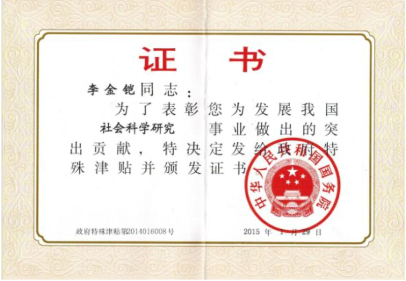 2014年度国务院特殊津贴专家 ~ 李金铠