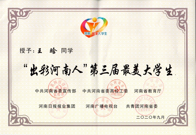 2020年“出彩河南人”第三届最美大学生 ~ 王晗
