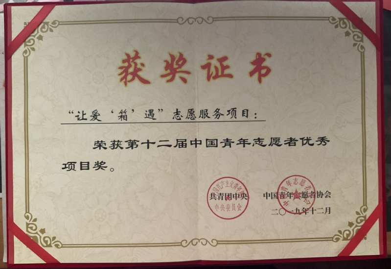 2019年度第十二届中国青年志愿者优秀服务项目奖(“让爱‘箱’遇”)
