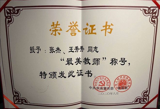 2020年度全国最美教师 ~ 张杰、王秀秀