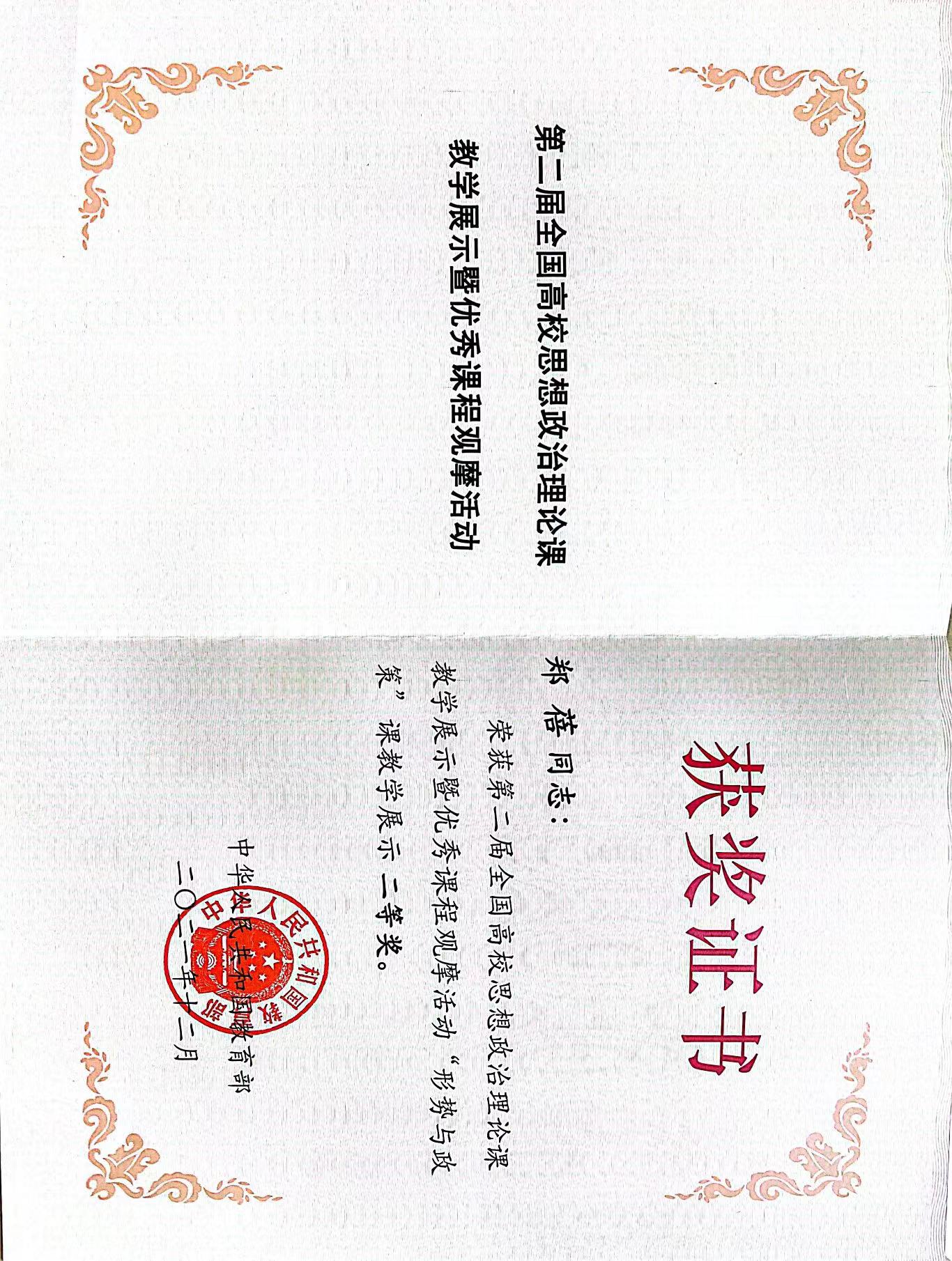 2021年度第二届全国思想政治理论课教学展示活动二等奖 ~ 郑蓓