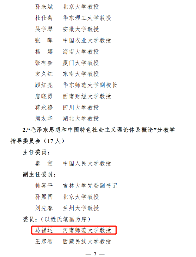 2021教育部高等学校思想政治理论课教学指导委员会委员 ~ 马福运