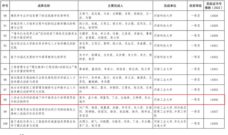 2021年度河南省高等教育教学成果奖一等奖 ~ 焦丹