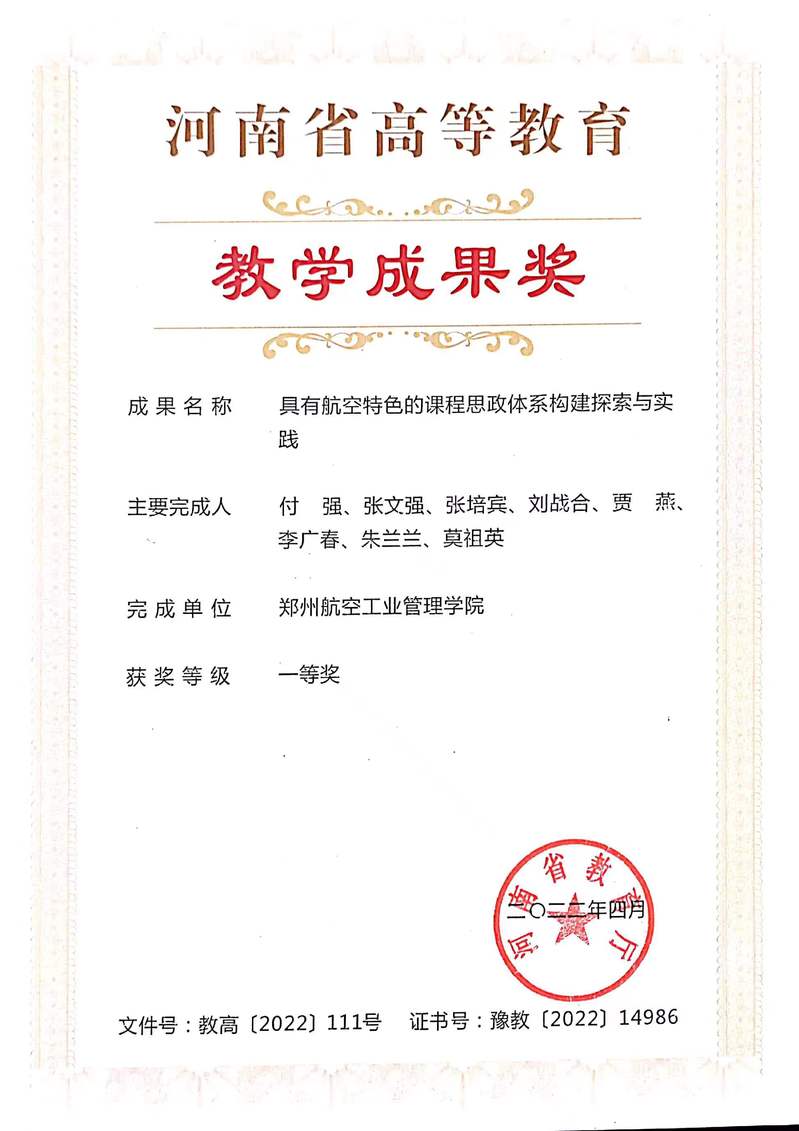 2022年度河南省高等教育教学成果奖一等奖 ~ 付强