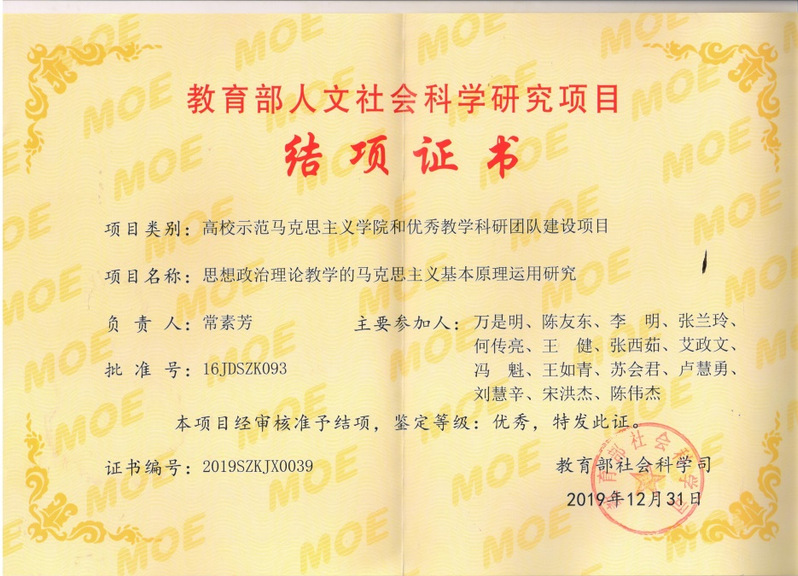 2016年度教育部示范马克思主义学院和优秀教学科研团队奖 ~ 常素芳