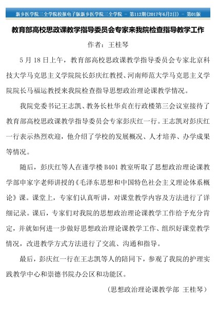 【新乡医学院三全学院】教育部高校思政课教学指导委员会专家来我院检查指导教学工作