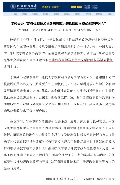 【河南科技大学】学校举办“新媒体新技术推动思想政治理论课教学模式创新研讨会”