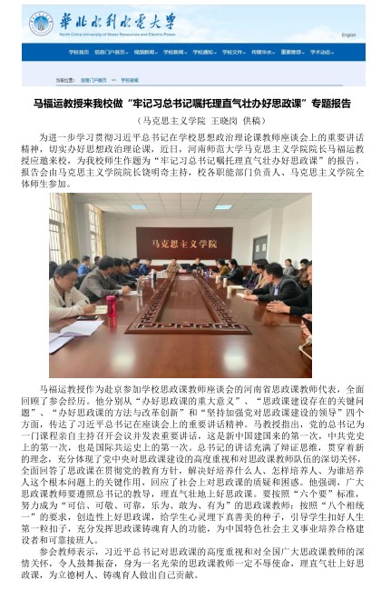 【华北水利水电大学】马福运教授来我校做“牢记习总书记嘱托理直气壮办好思政课”专题报告