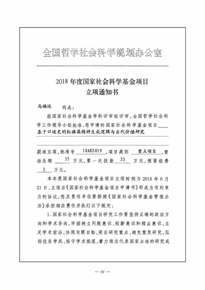 2018年度国家社会科学基金重点项目 ~ 马福运