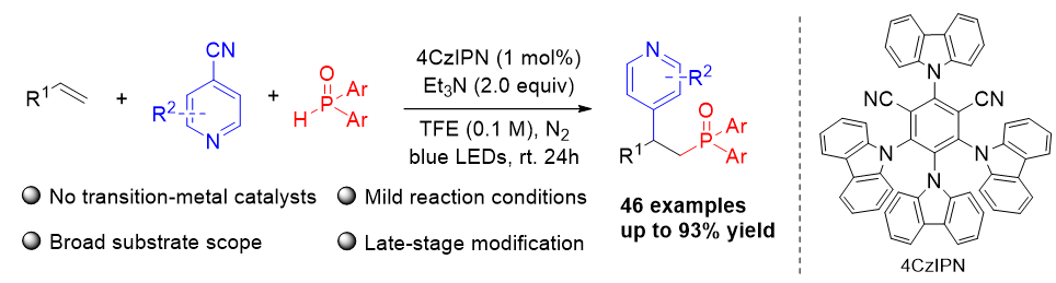 代表性论文: 4.Jiaxuan Shen,* Yipin Zhang, Yanjiang Yu, and Manman Wang, Metal-Free Visible-Light-Induced Photoredox-Catalyzed Intermolecular Pyridylation/Phosphinoylation of Alkenes. Org. Chem. Front. 2021, 8(5), 901-907. (通讯作者,化学一区,Top,IF:5.155)
